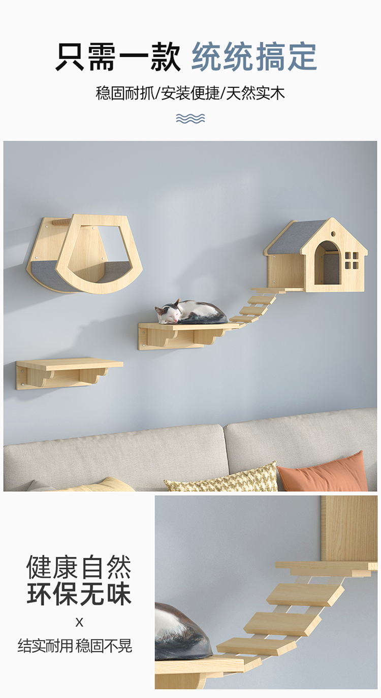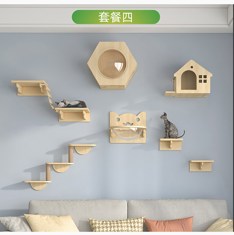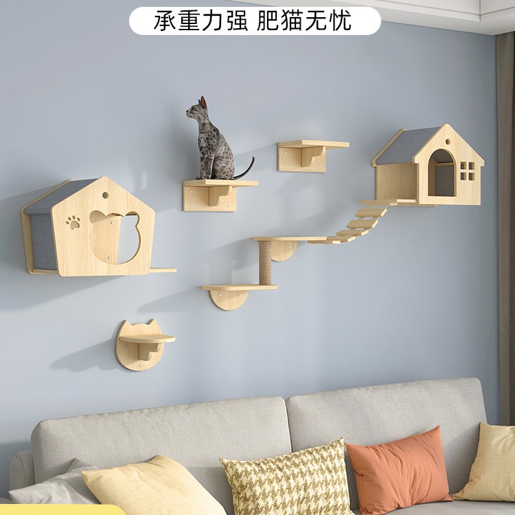 고양이 등반 랙 벽에 장착 된 단단한 나무 벽에 장착 된 고양이 랙 고양이 둥지 고양이 나무 통합 벽 표면 공간 캡슐 고양이 점프 플랫폼 긁는 기둥