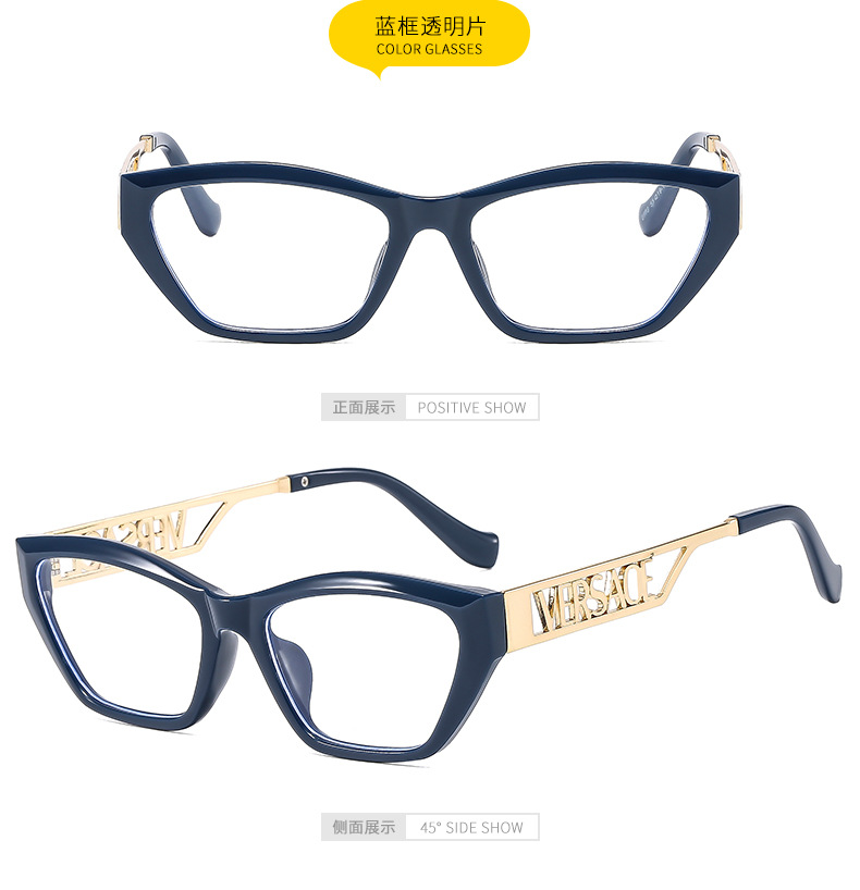 새로운 유럽과 미국의 유명 팬 홈 선글라스 유행 남성과 여성의 트렌디 한 선글라스 중공 금속 다리 안티 블루 안경스토어 가기