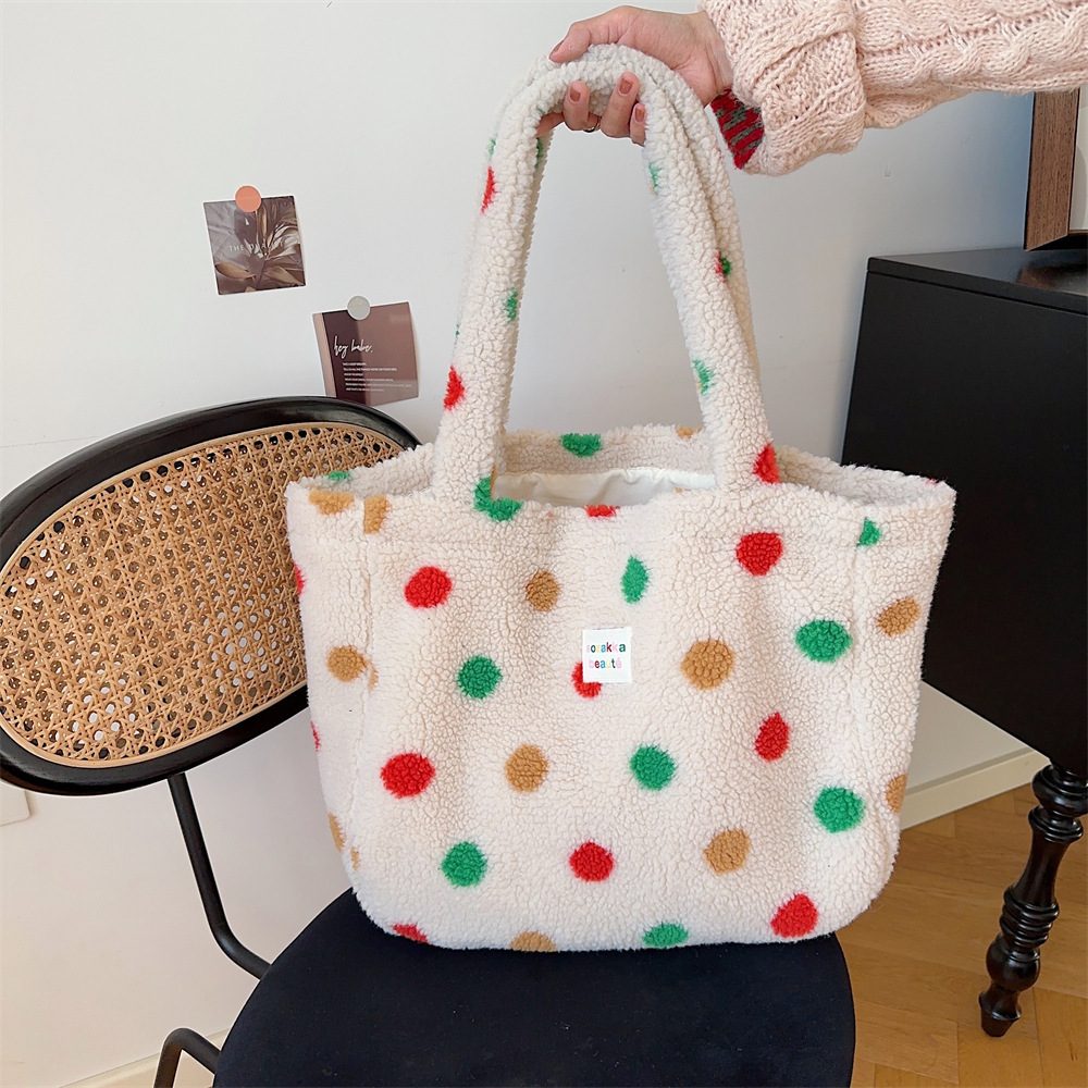 31231 봉제 가방 여성 2023 겨울 새 컬러 폴카 도트 핸드백 학생 학교 가방 토트 백스토어 가기