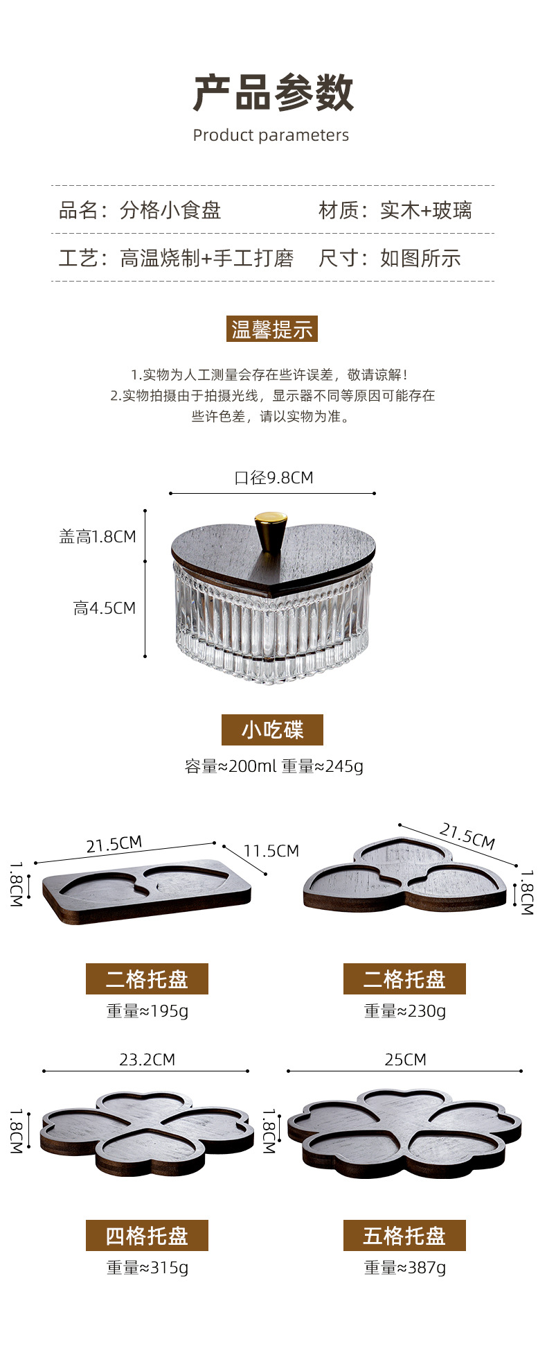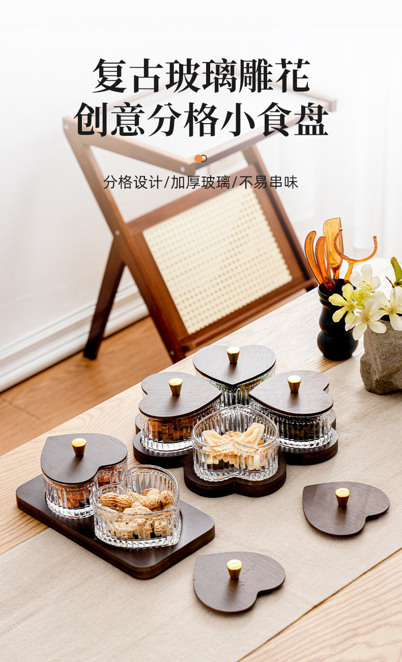 • 4 그리드 트레이 + 투명 하트 모양의 그릇 + 뚜껑