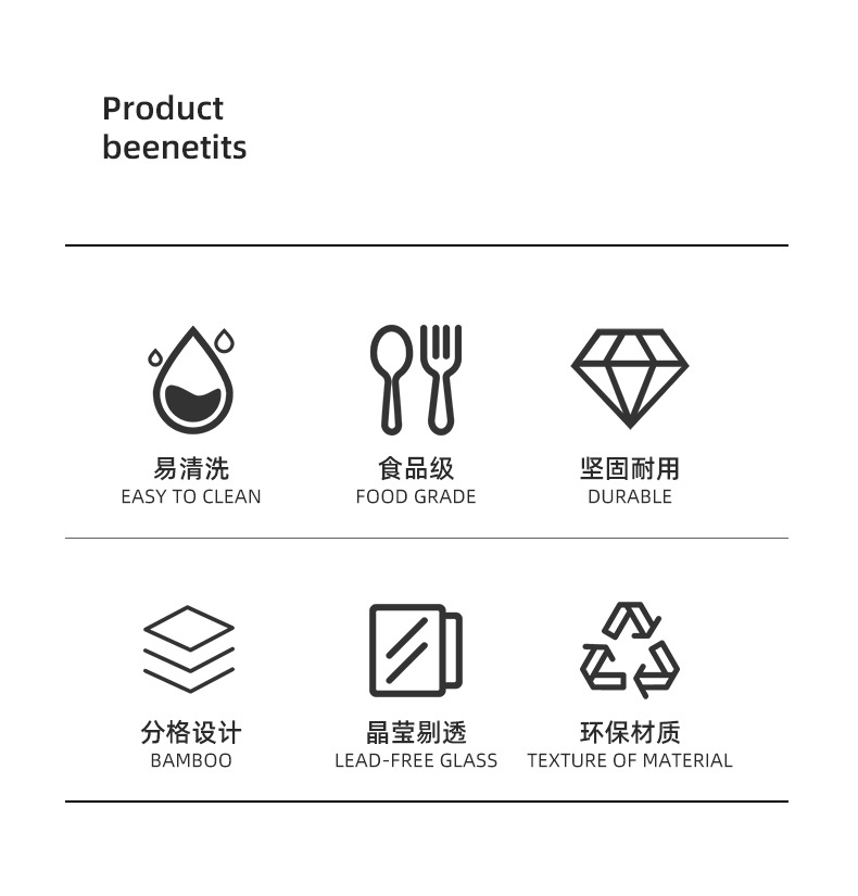 • 3 그리드 트레이 + 투명 하트 모양의 그릇 + 뚜껑