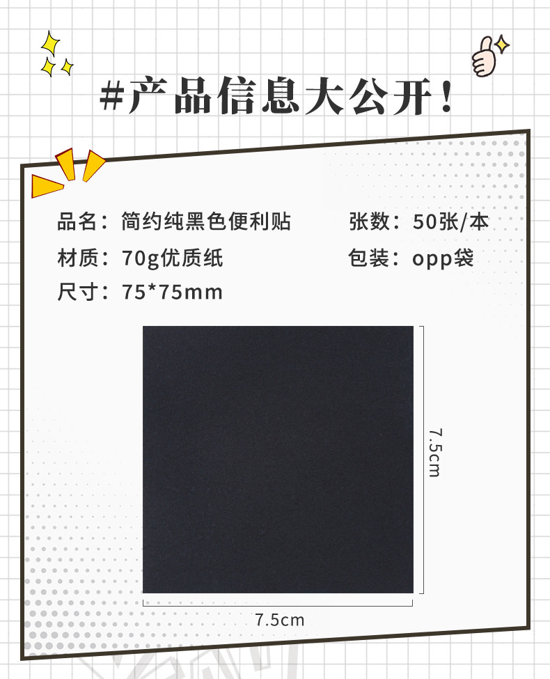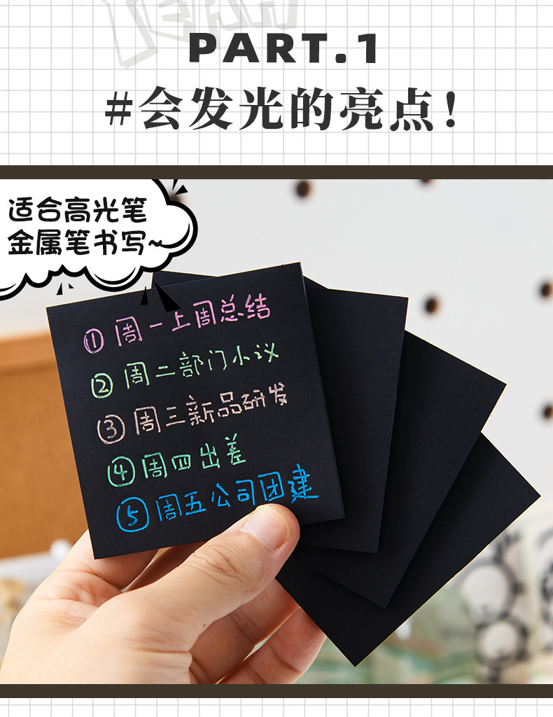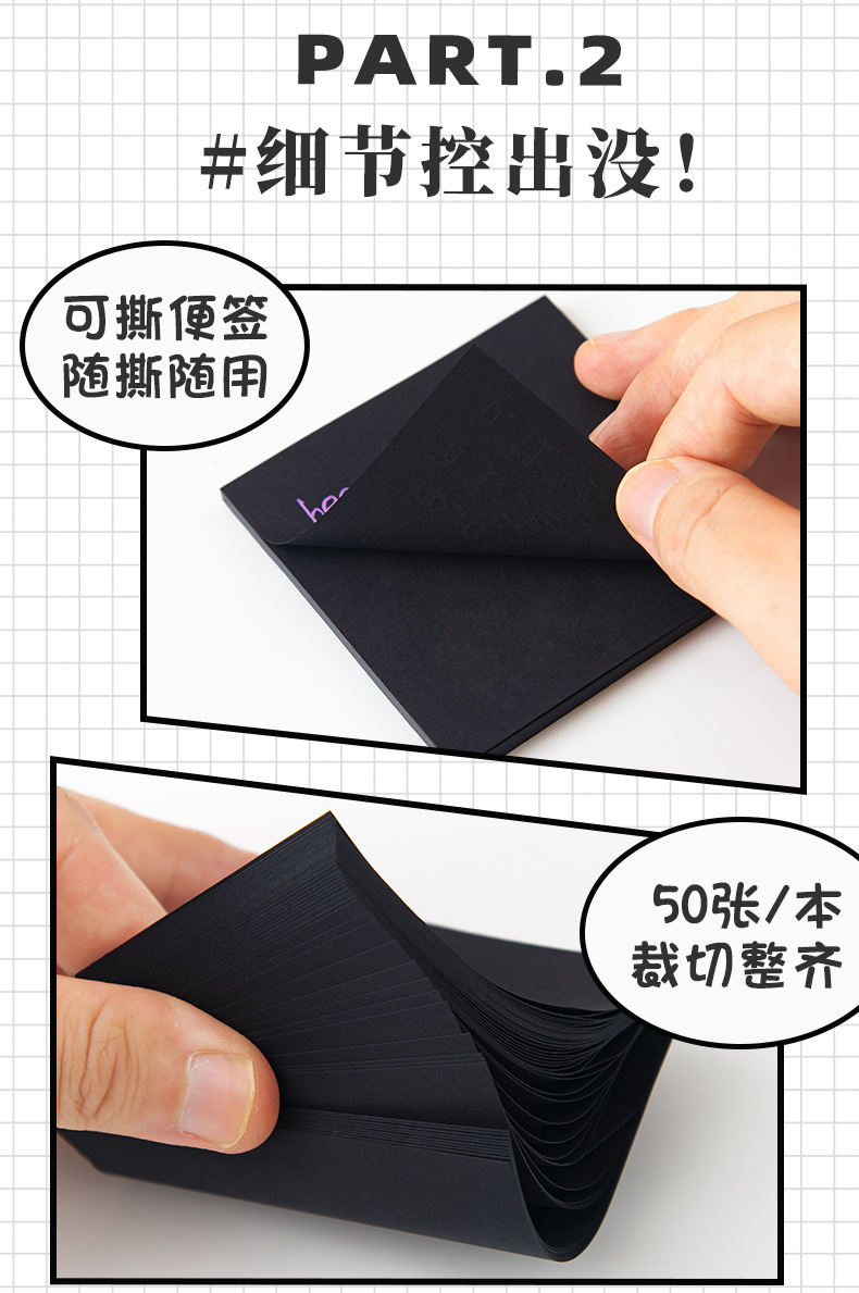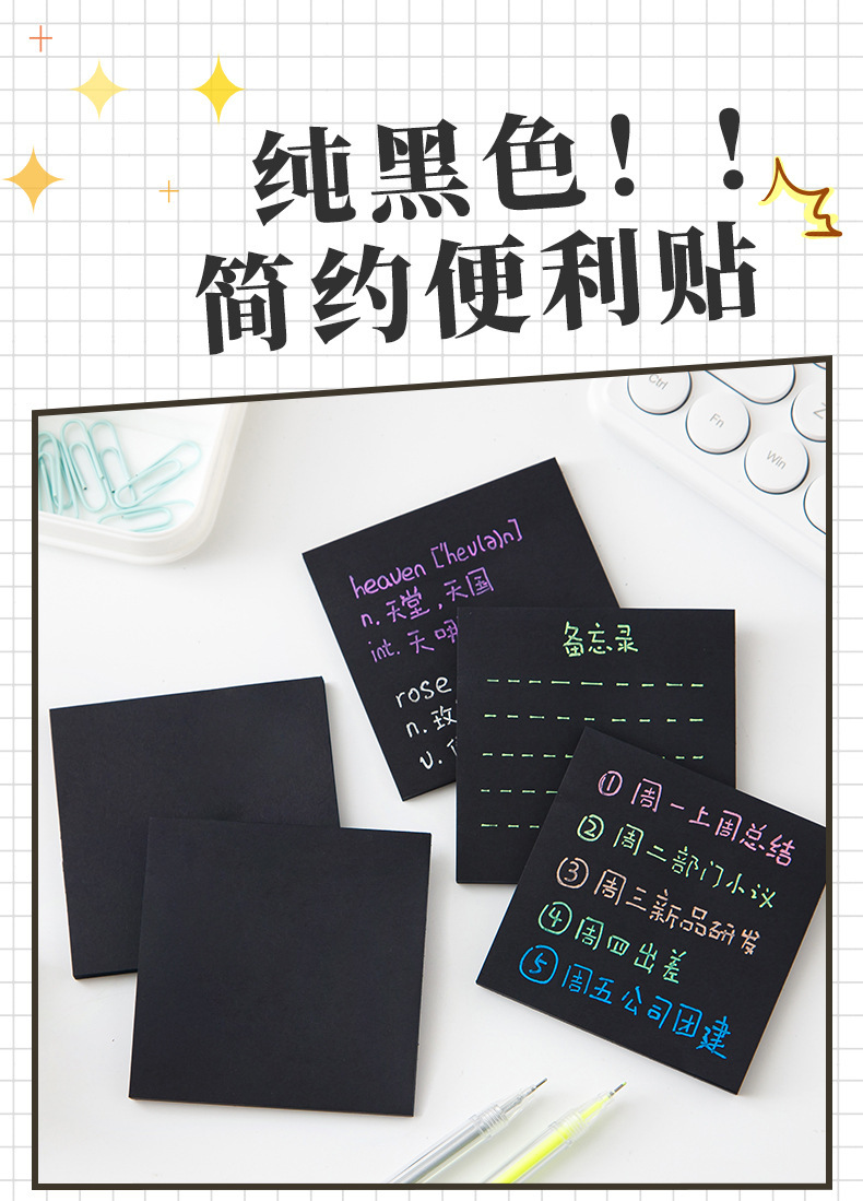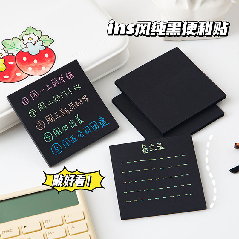 Xiaohong 책 블로거 추천 검은 끈적 끈적한 메모 순수한 검은 색 끈적 끈적한 스타일 눈물 메시지 노트 스트립 작은 노트북스토어 가기