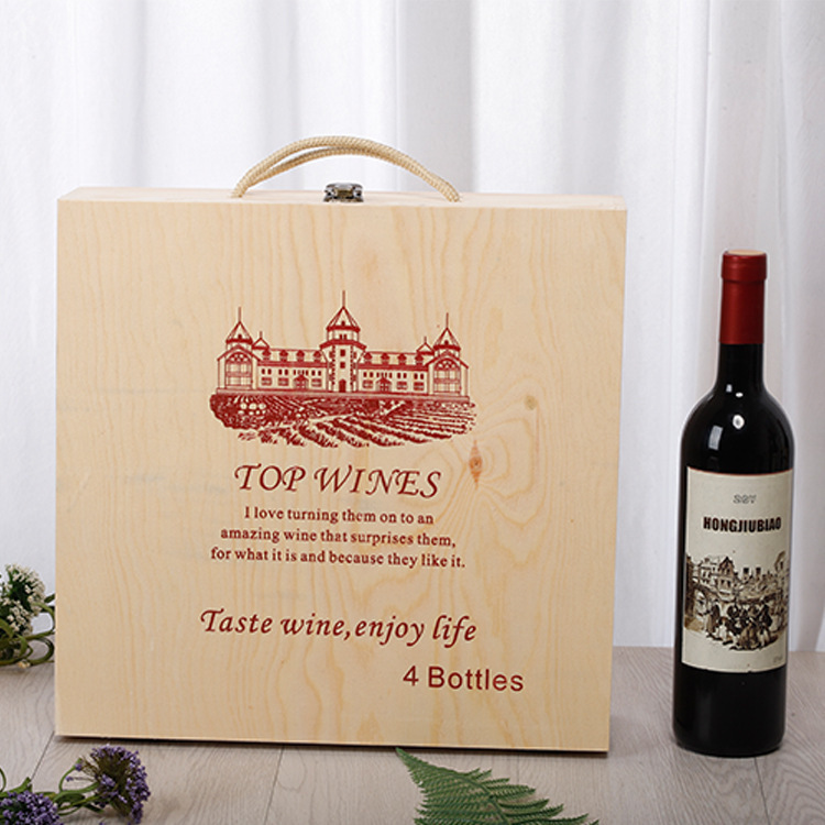 • 4 개의 단일 열 소나무 플립 와인 상자 36*35*10cm