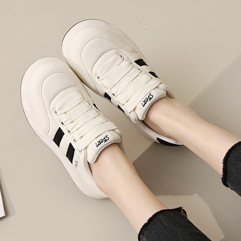 여성을위한 두꺼운 밑창 운동화 2025 새로운 봄 슈퍼 핫 편안하고 부드러운 흰색 신발 원래 틈새 다목적 빵 신발스토어 가기