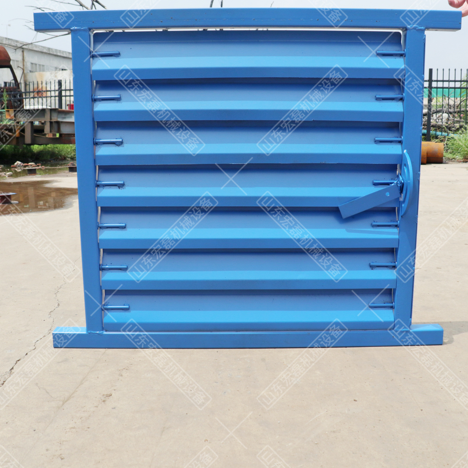煤矿用百叶式调节风窗的作用是:用来调节控制可燃混气体(瓦斯)与空气的比例;调控巷道里通风量的大小跟速度,保证生产作业点的风量和风速,符合各项安全章程的要求,另外就是在逆风时,调节风门还可起到一定特殊作用,比如对巷道里温度的调节,预热井下某个井筒的空气是温度均衡,是人在井下更舒适。IMG_3861