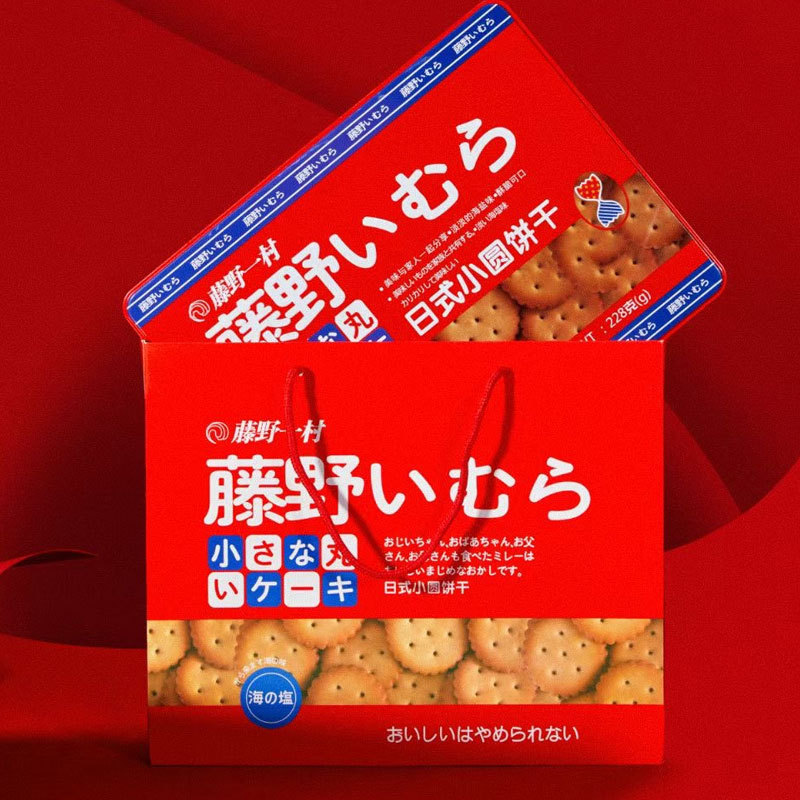 후지노 마을 일본 작은 둥근 비스킷 228g 철 박스형 바다 소금 짠 새해 선물 웨딩 스낵 도매스토어 가기