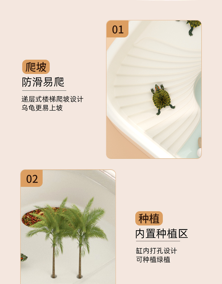 거북이 수조 가정용 조경 창의적인 신형 태양광 테라스 포함 생태 소형 거북이 수조 어항 거북이 사육 수조스토어 가기