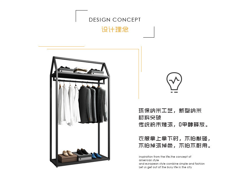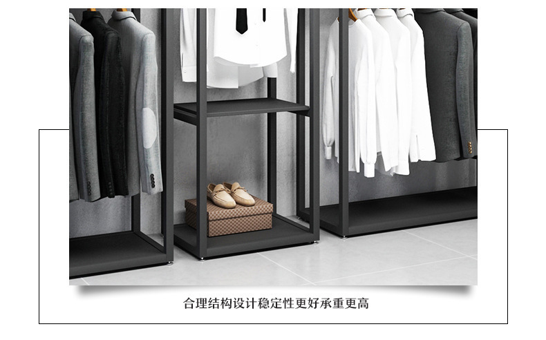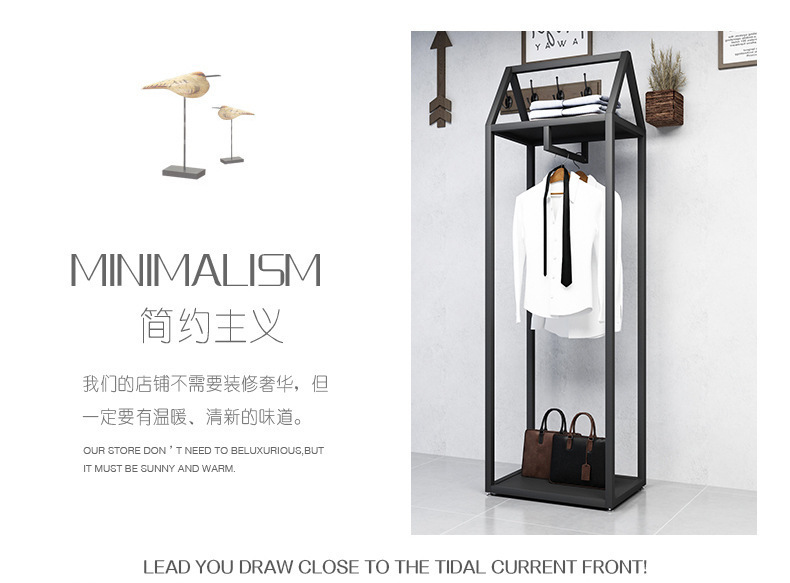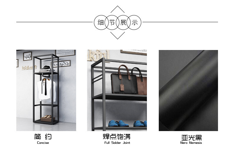블랙 의류 매장 디스플레이 스탠드 남성 매장 선반 바닥 형 더블 레이어 디스플레이 걸이 철 금속 가방 랙