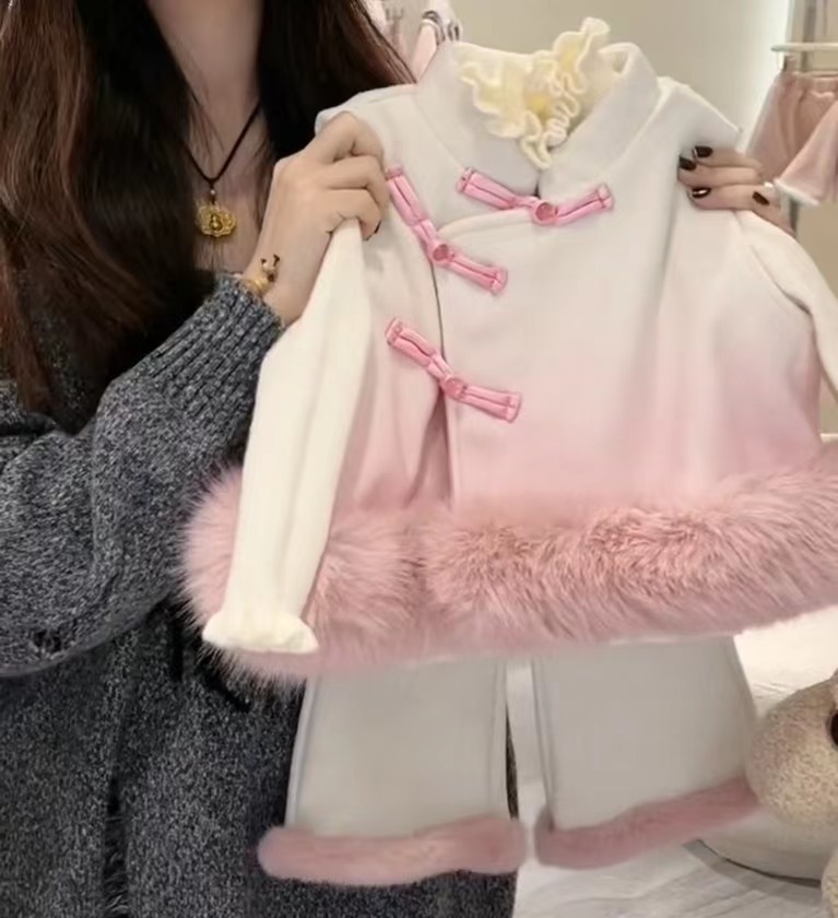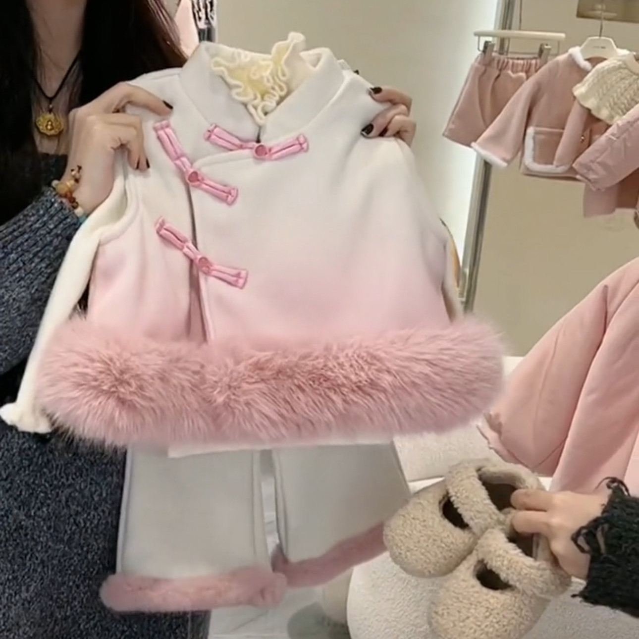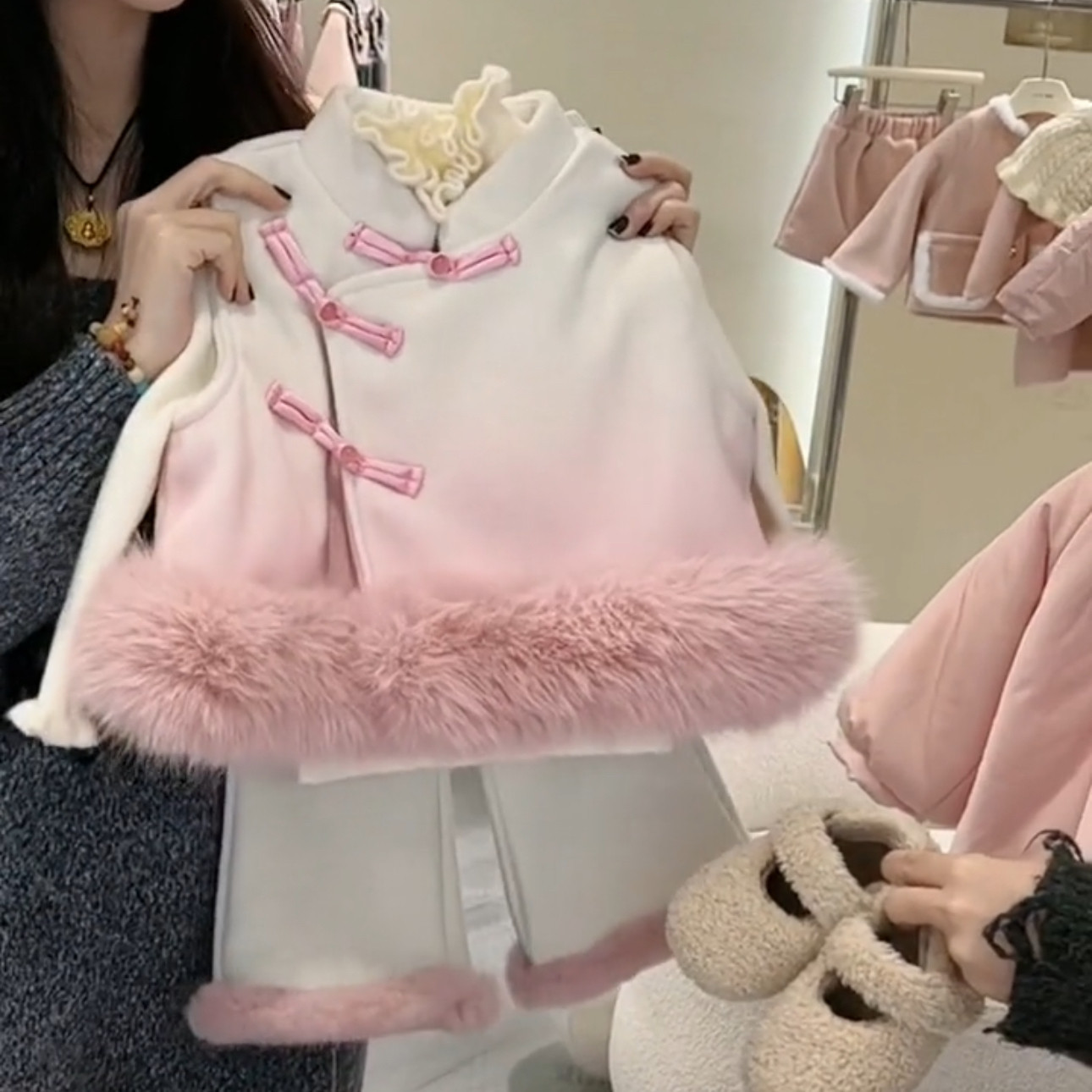 새해맞이 의상 아동복 여아 그라데이션 색상 모직 치파오 조끼 가을 겨울 여아 모직 조끼 공주 스타일스토어 가기