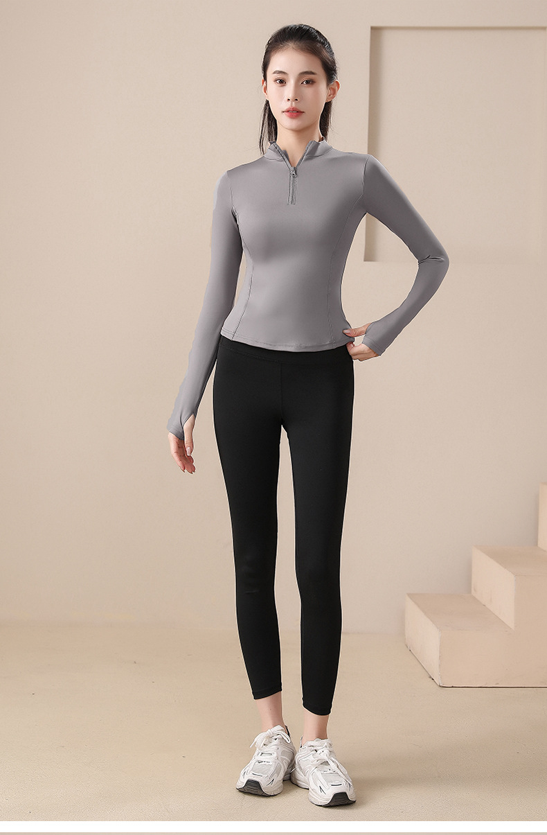 반 지퍼 피트니스 옷 여성용 긴팔 전문 러닝 스포츠 탑 요가 옷 티셔츠 꽉 야외 훈련 옷스토어 가기
