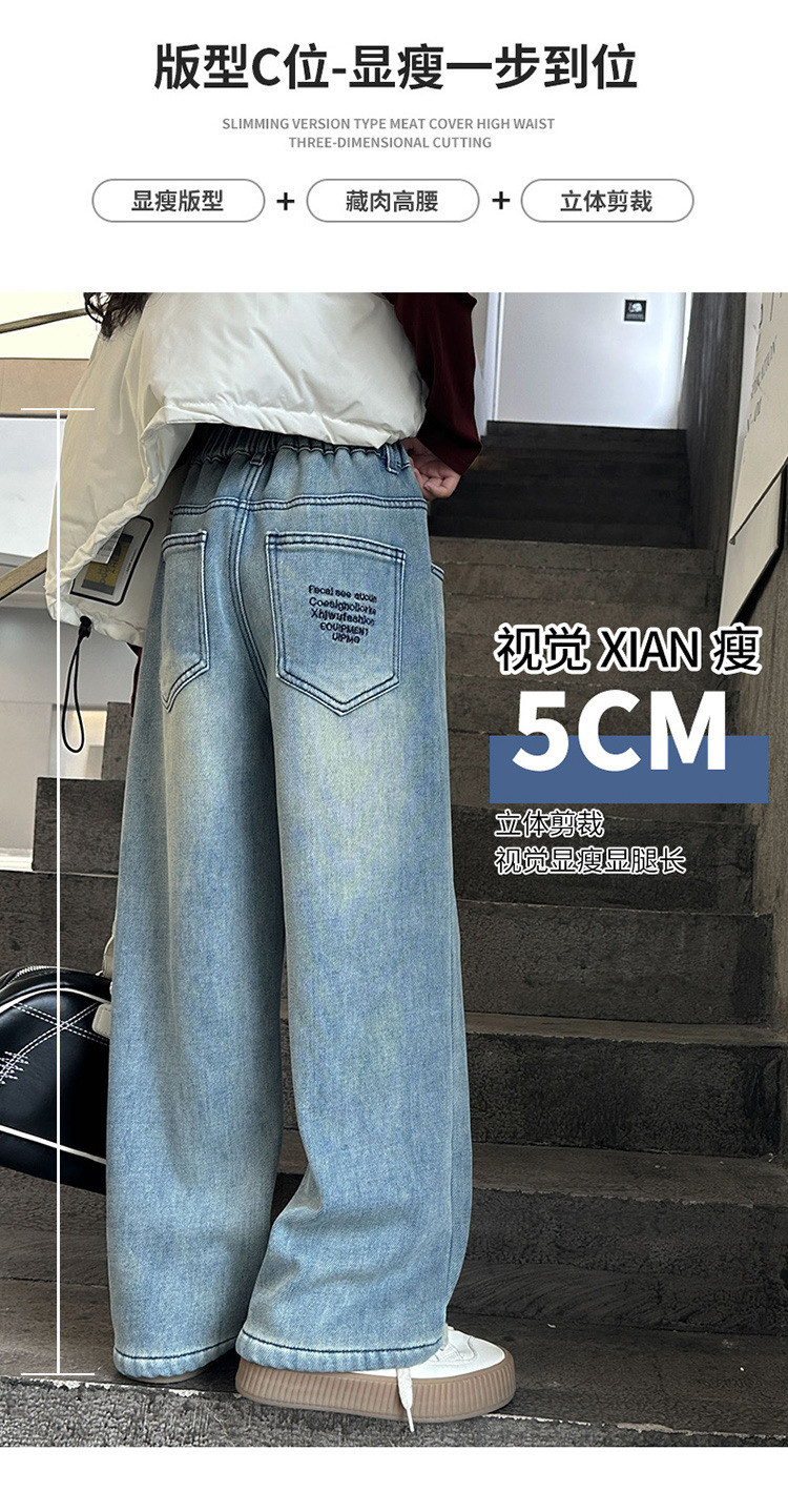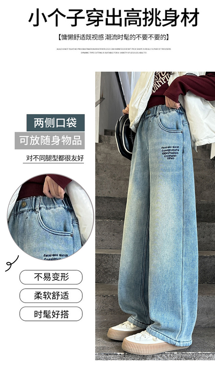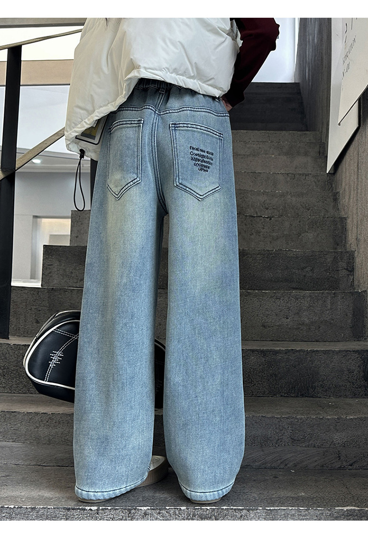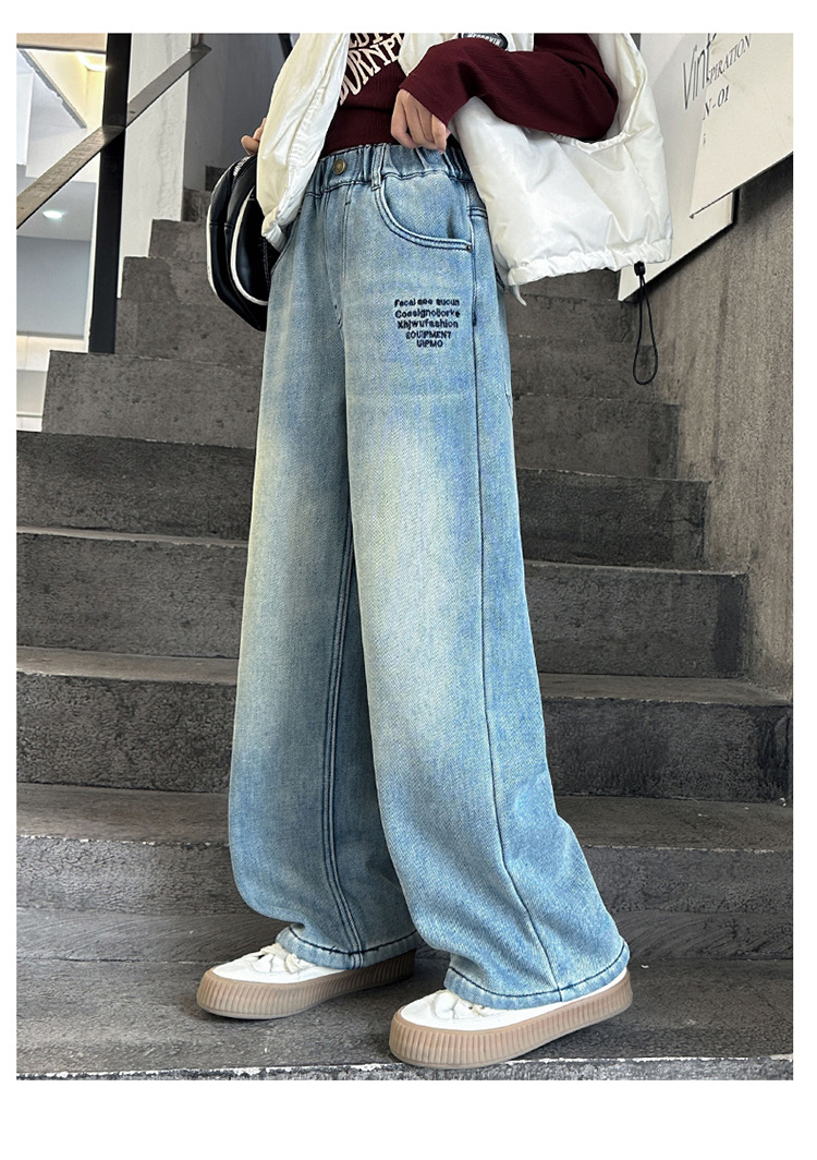 소녀 바지 봄 새로운 스타일 중 큰 어린이 앞과 뒤 영어 자수 청바지 새로운 스타일 어린 소녀의 가을 스트레이트 다리 바지스토어 가기