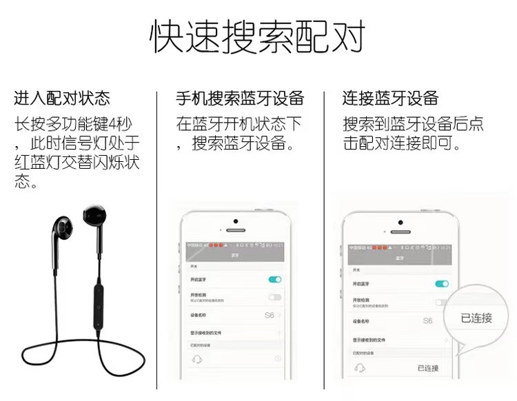 국경 간 뜨거운 판매 S6 블루투스 헤드셋 바이노럴 이어폰 야외 스포츠 충격 스테레오 선물 블루투스 헤드셋스토어 가기