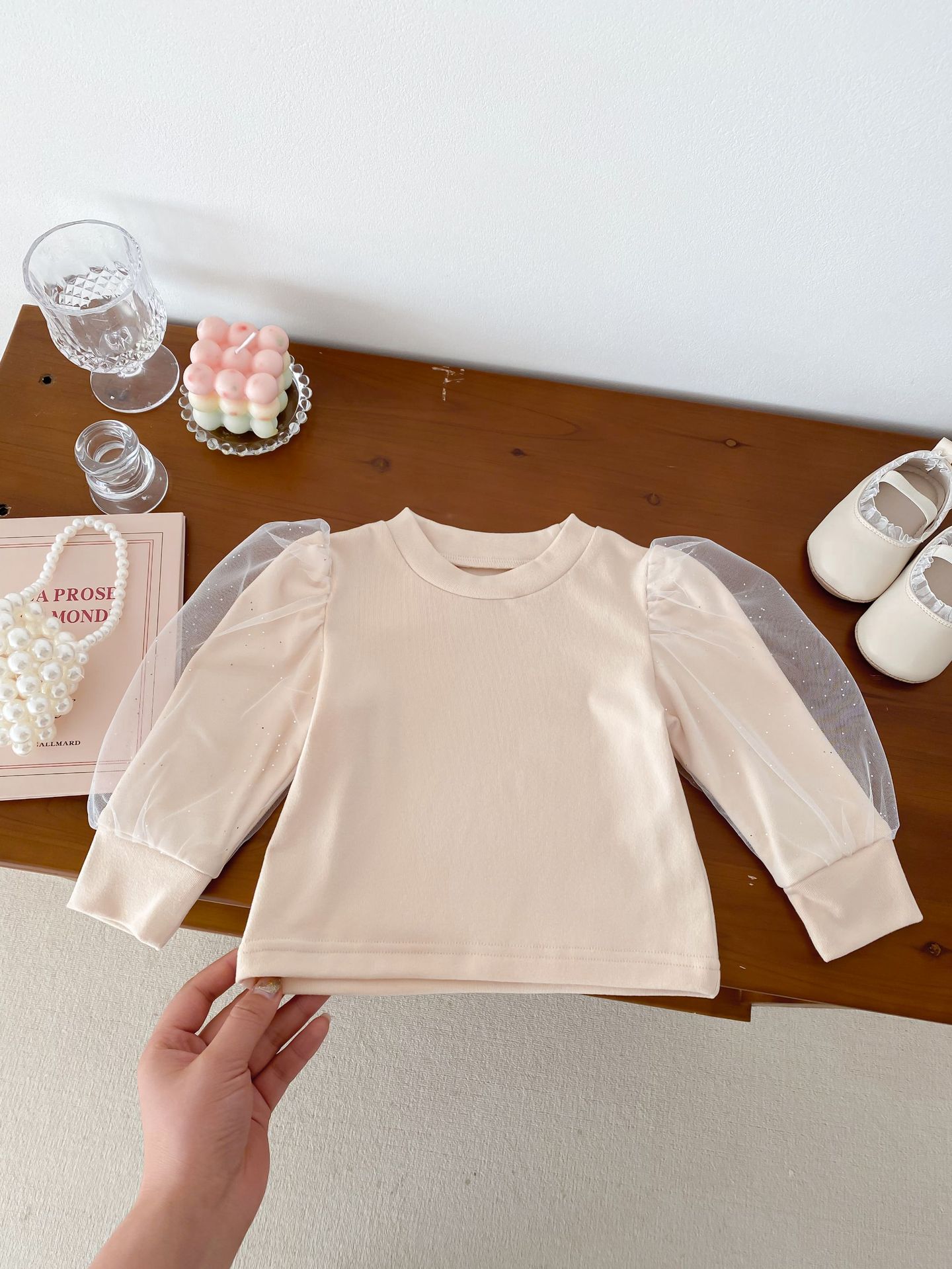 아기 봄 탑 원사 소매 새로운 서양식 소녀 아기 공주 퍼프 소매 바닥 셔츠 면 긴 소매 티셔츠스토어 가기