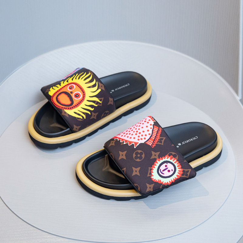 2024 새로운 만화 낙서 슬리퍼 벨크로 호박 태양 샌들 여성을위한 두꺼운 밑창 외부 슬리퍼