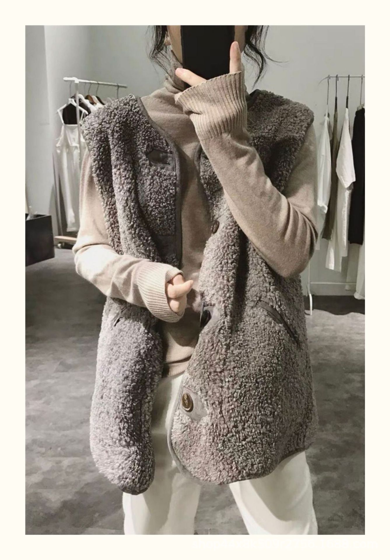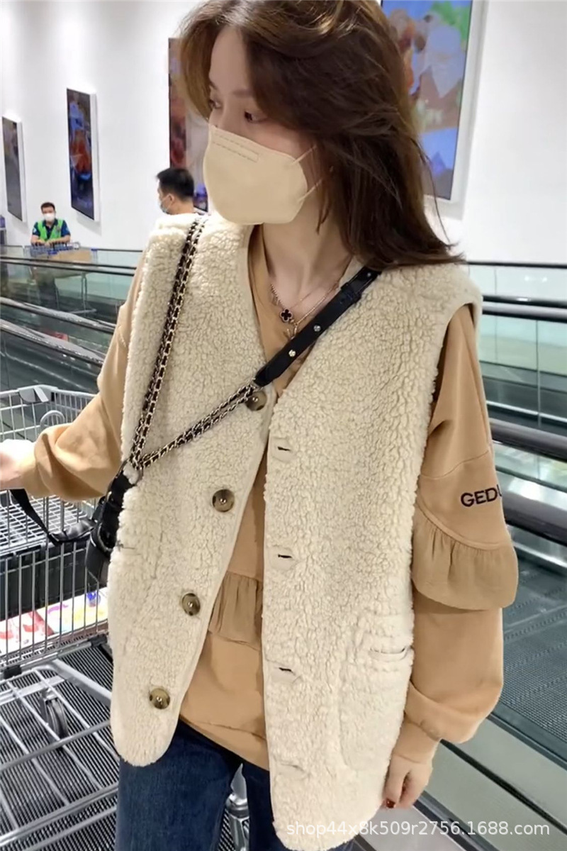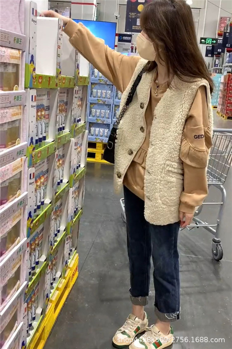 가을과 겨울 2023 여성을위한 양고기 모피 조끼 새로운 느슨한 모피 조끼 겉옷 양복 조끼 서양식 코트스토어 가기