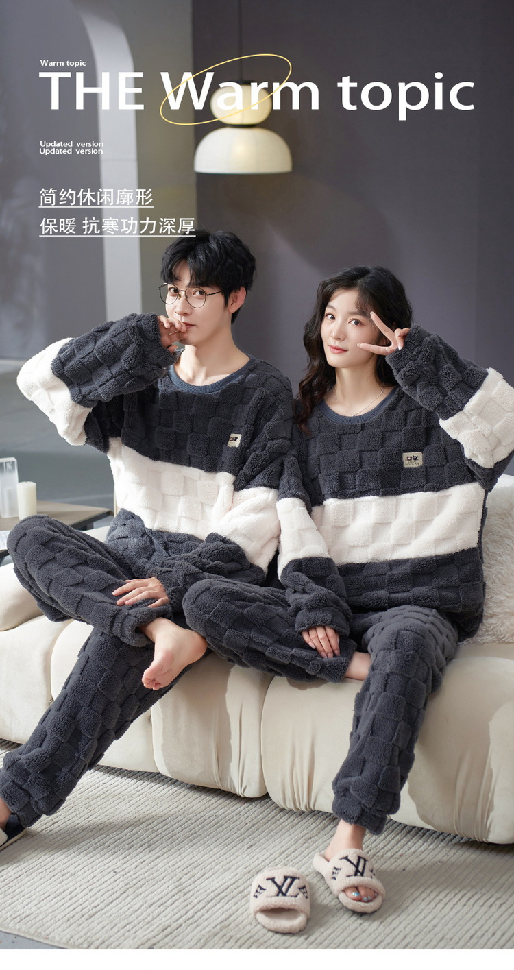 산호 양털 두꺼운 커플 잠옷 기모 여성의 가을과 겨울 만화 남성 플란넬 겉옷 홈웨어