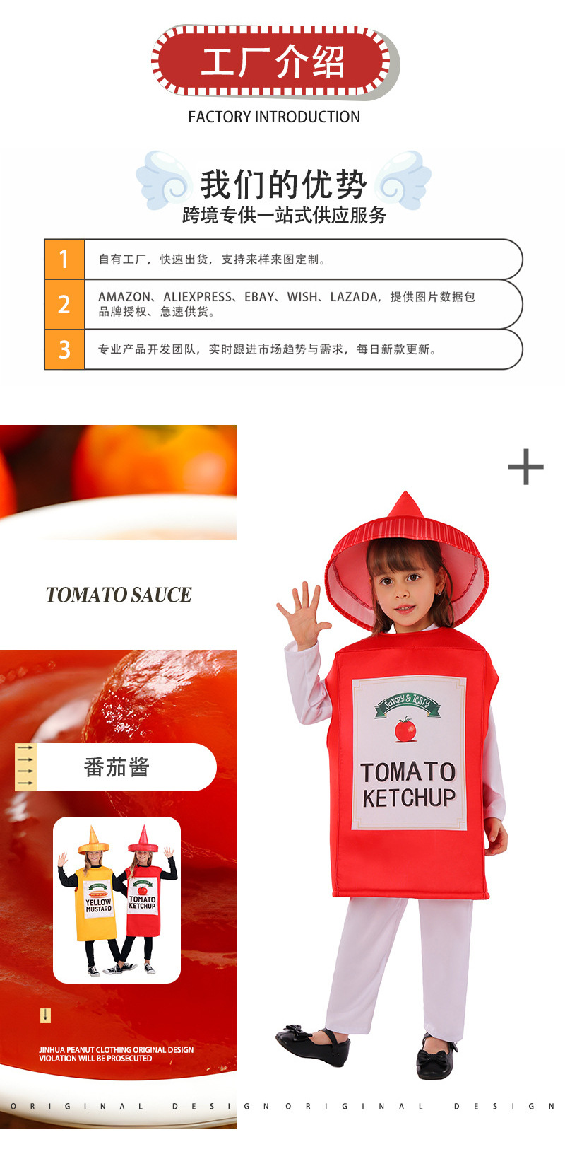 공장 재고 할로윈 토마토 소스 병 역할 놀이 cos 의류 학교 축제 공연 어린이 공연 의류스토어 가기