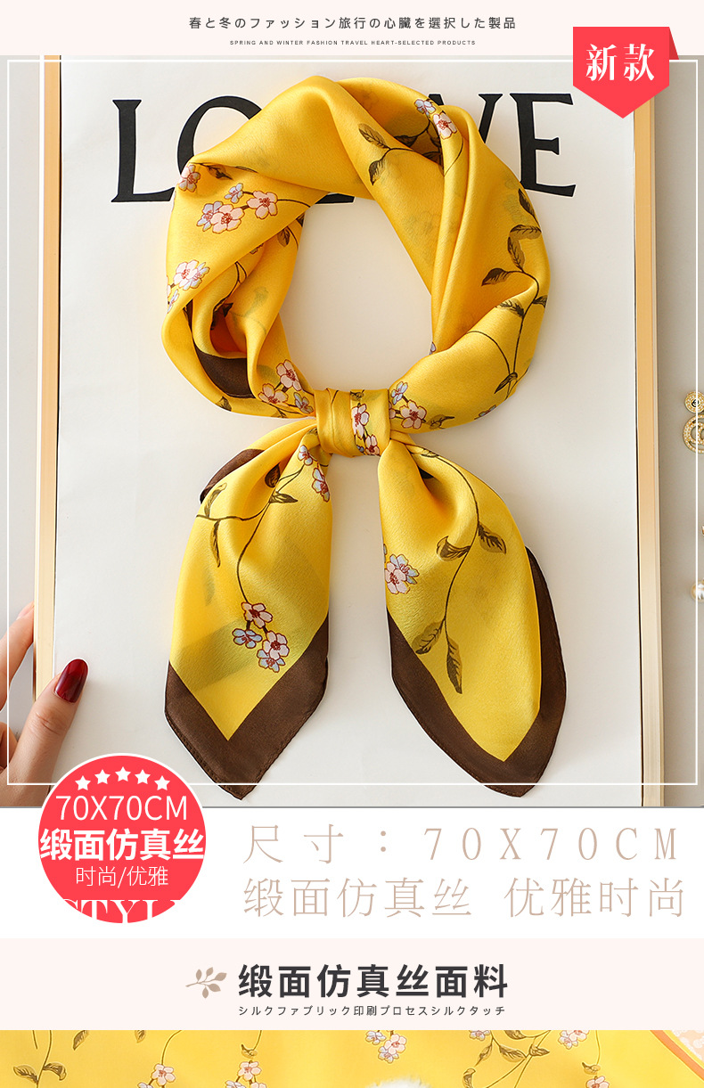 노란색 작은 사각형 스카프 여성의 봄과 가을 목 스카프 스카프 어머니 일치하는 셔츠 장식 70x70스토어 가기