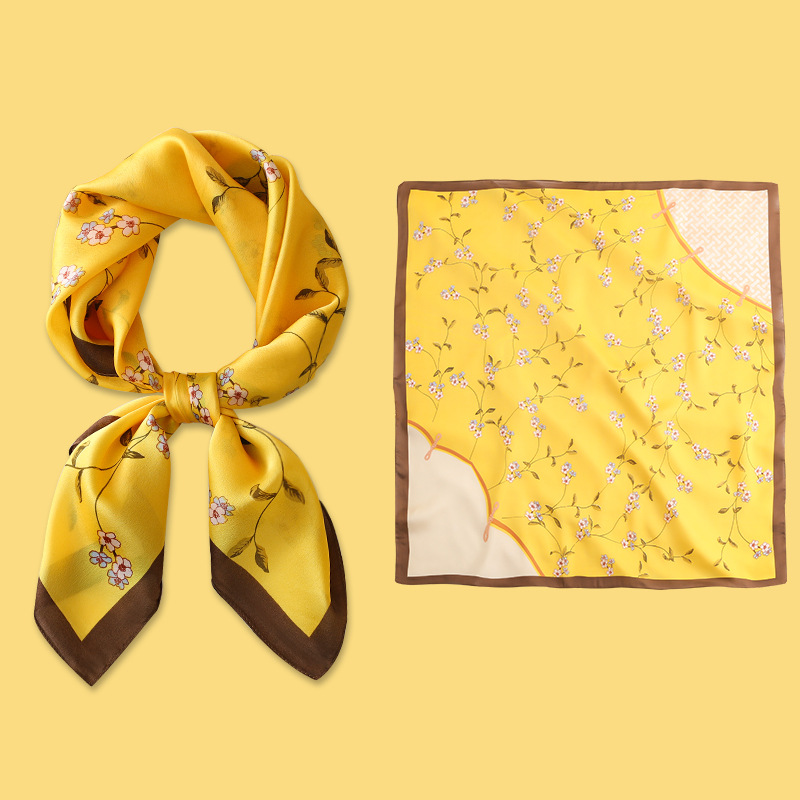 노란색 작은 사각형 스카프 여성의 봄과 가을 목 스카프 스카프 어머니 일치하는 셔츠 장식 70x70