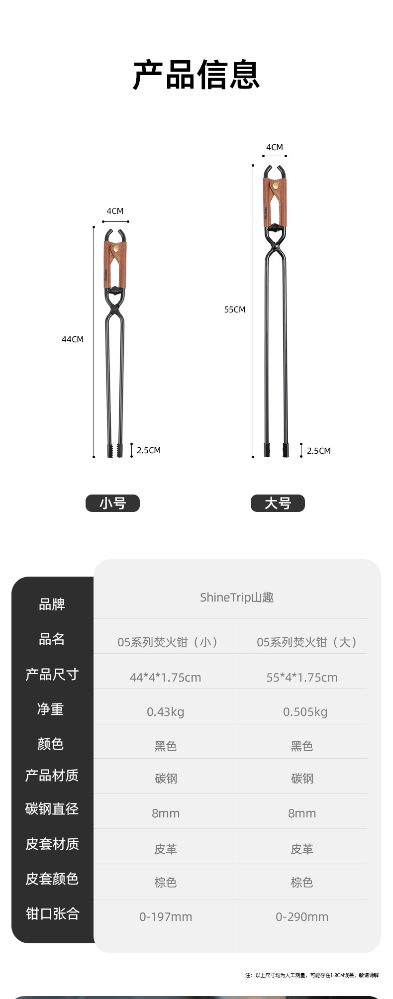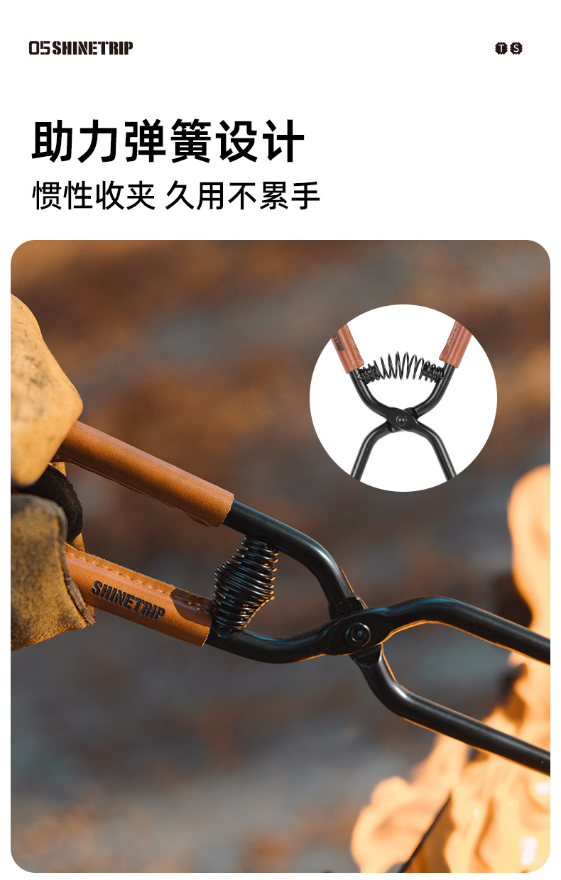 Shanqu 야외 05 시리즈 화재 클립 피크닉 바베큐 대담한 안티 스케일 탄소 화재 클립 경량 휴대용 탄소 강철 화재 클램프