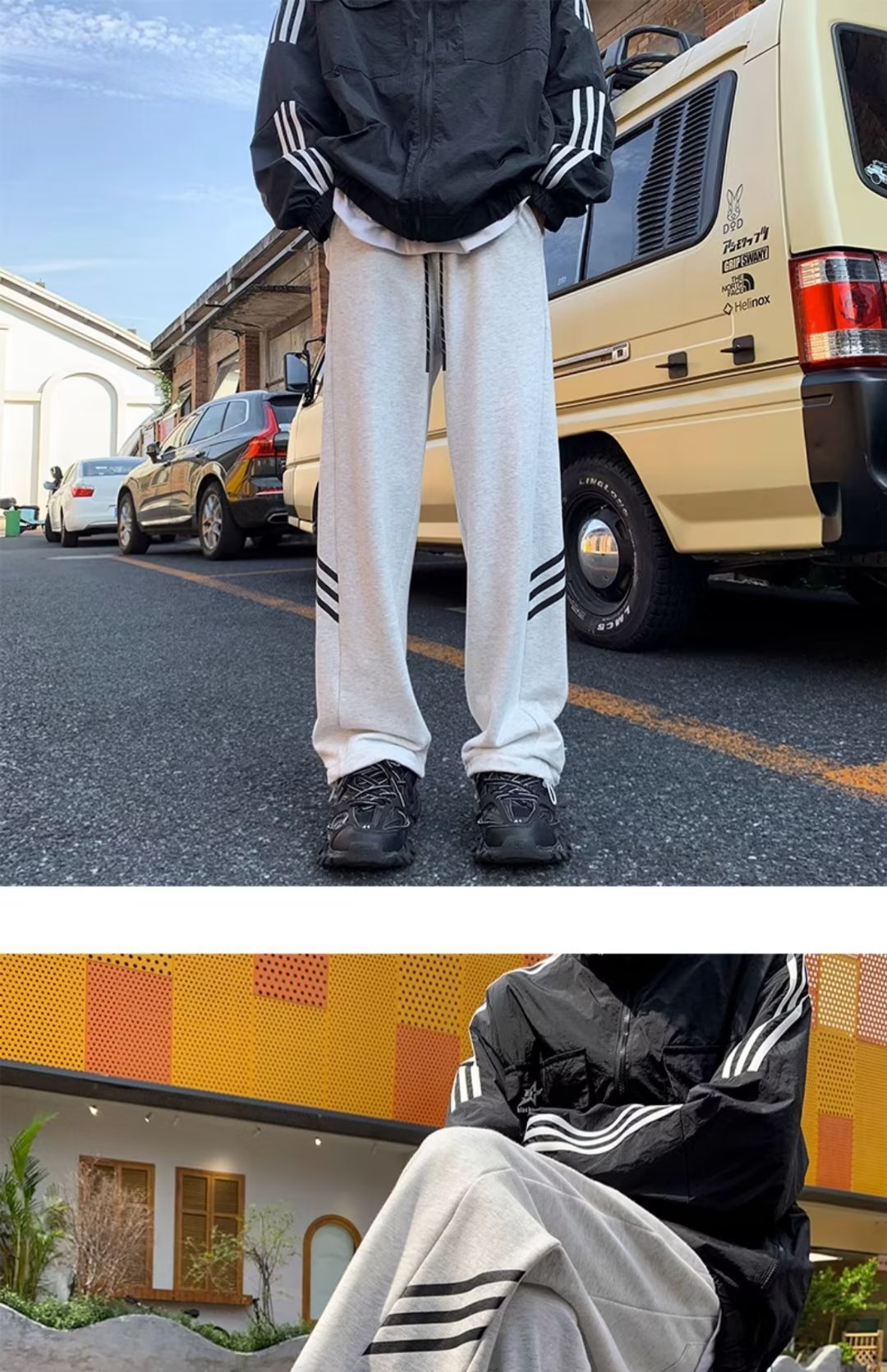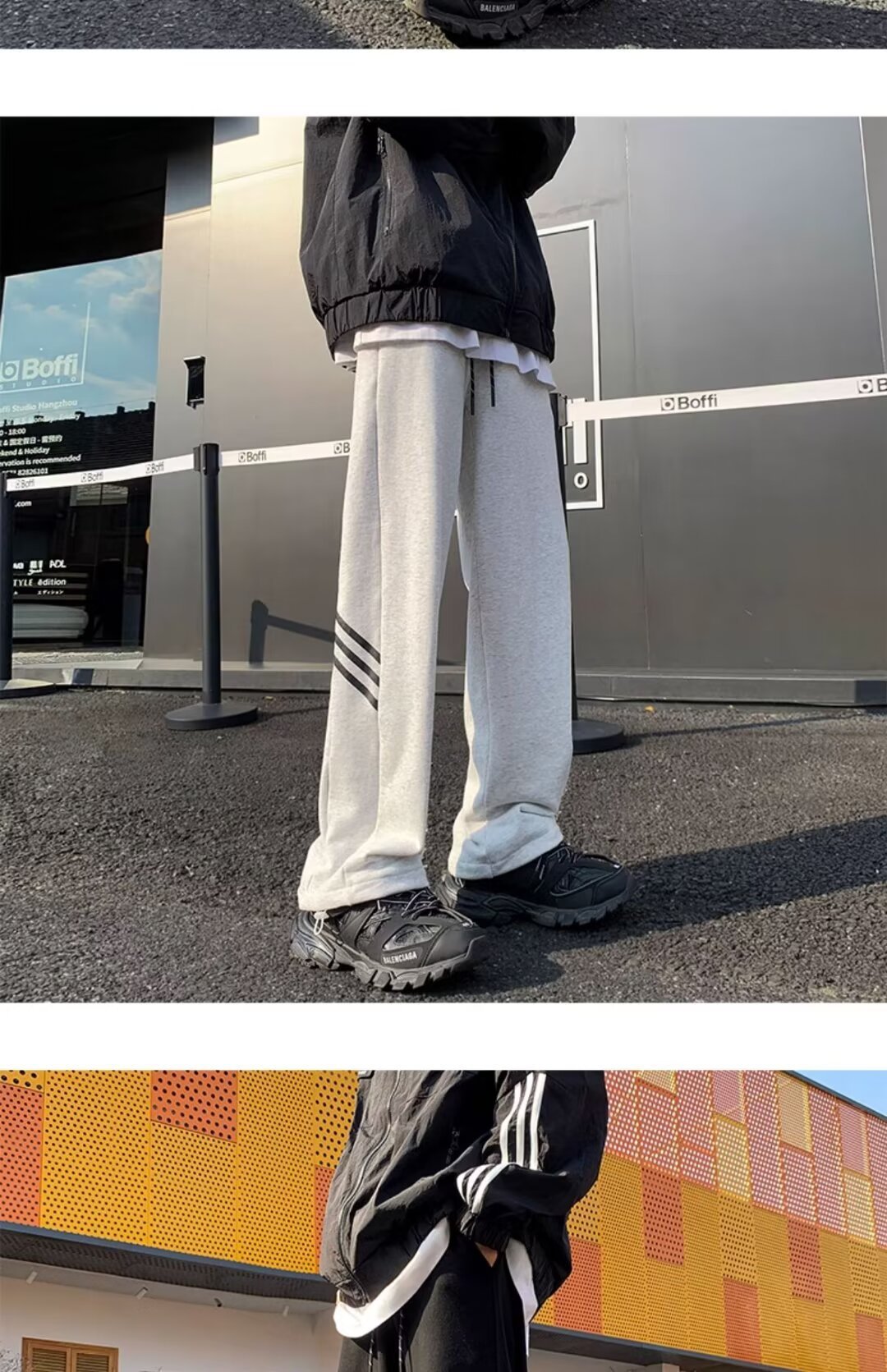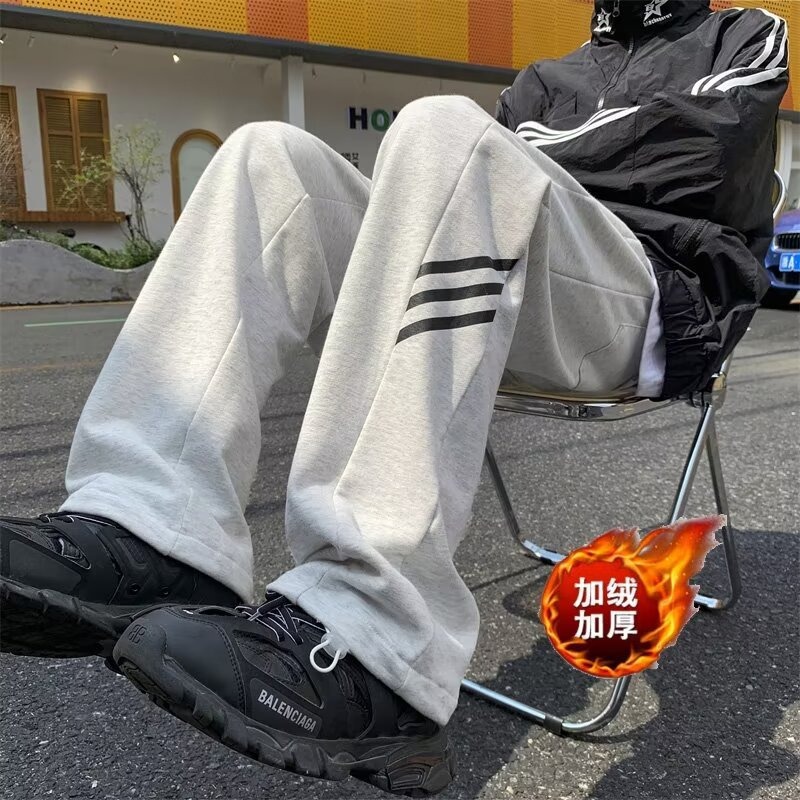 미국식 무거운 회색 스웨트 팬츠 남성용 겨울 기모 두꺼운 스트레이트 팬츠 오버 사이즈 플러스 사이즈 캐주얼 팬츠 도매스토어 가기