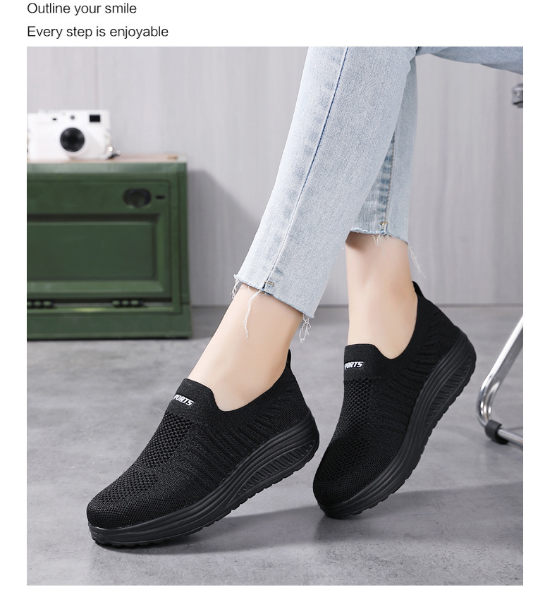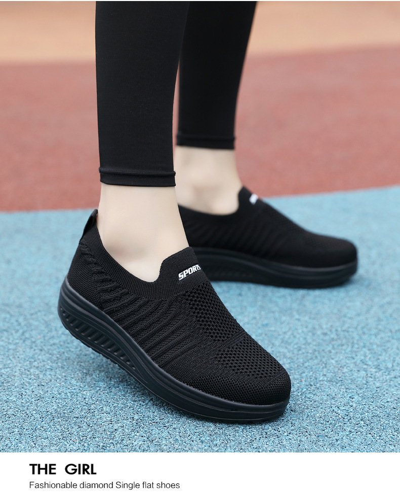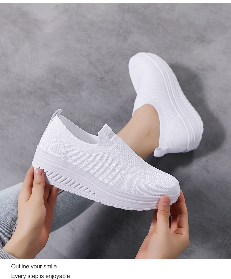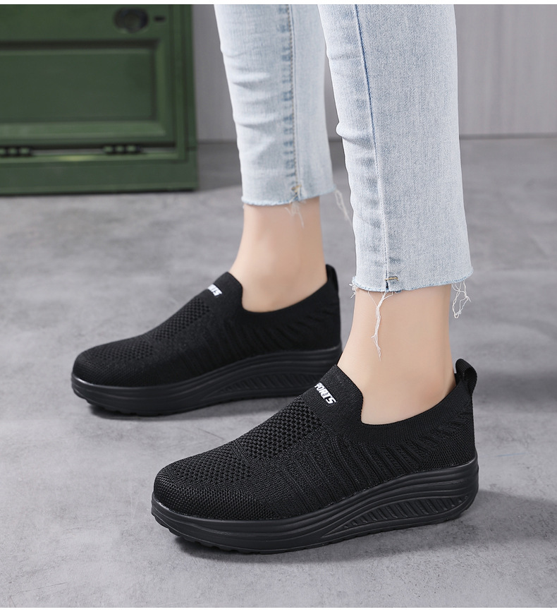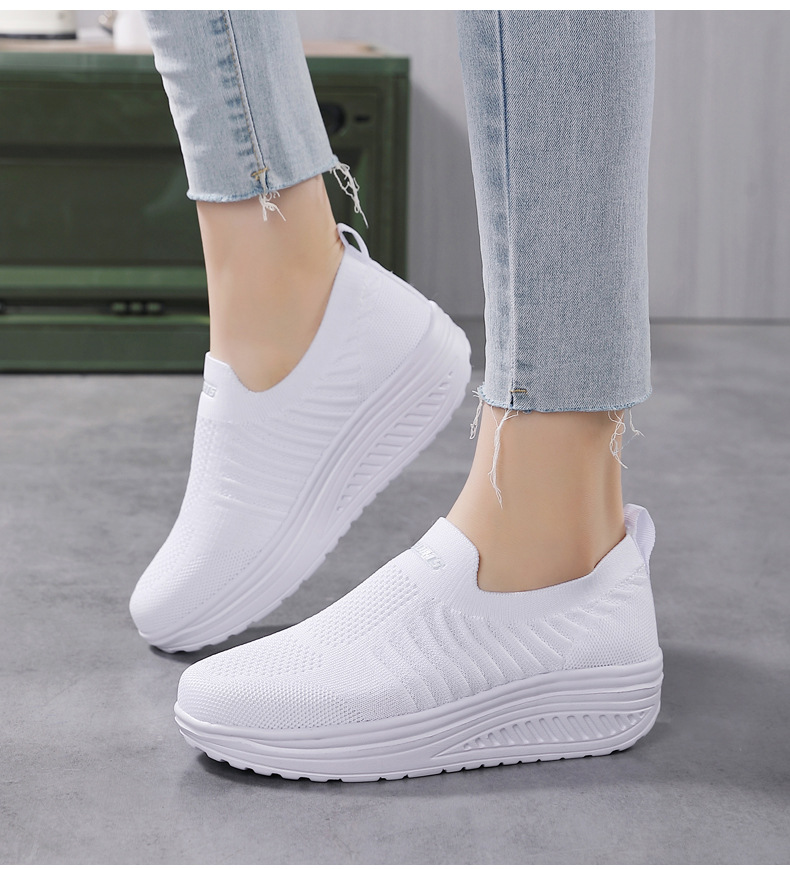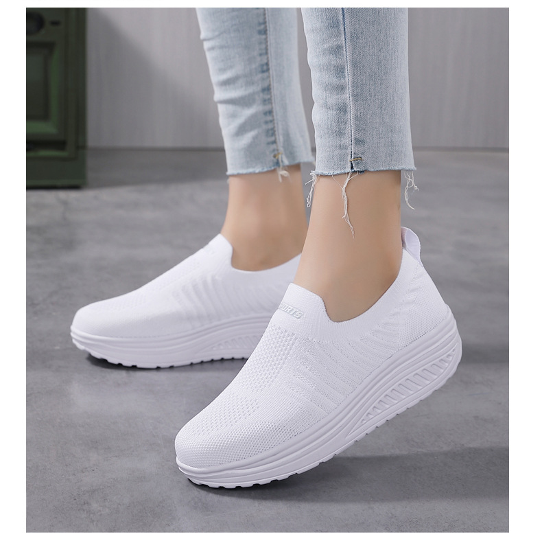 국경 간 슬립 온 경량 플랫폼 높이 증가 스포츠 흔들 신발 새로운 비행 짠 메쉬 통기성 캐주얼 여성 신발스토어 가기
