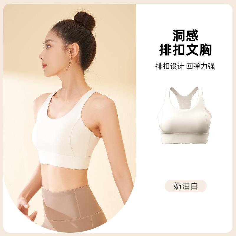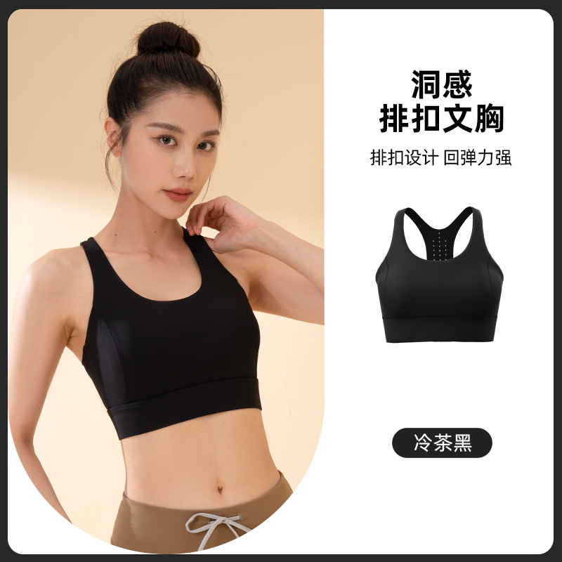 Juyitang 동공 버튼 브라, 통기성, 고강도, 충격 방지, 푸시업, 와이어 프리 여성용 스포츠 브라