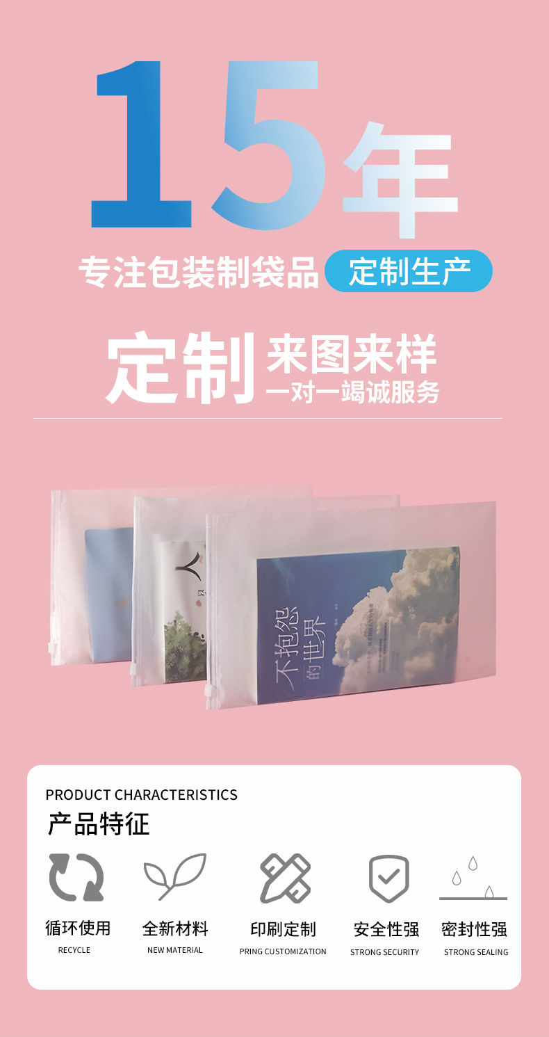 • 한쪽 면은 고투명, 다른 한쪽 면은 무광 처리된 14사 두께의 양면 구조; 30*25 가로형; CPE+PE
