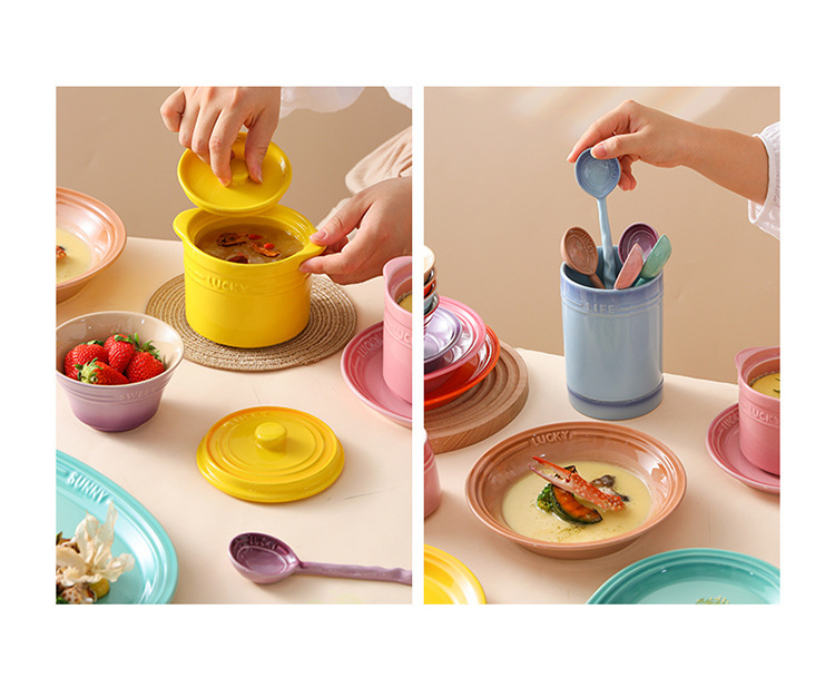 창조적 인 세라믹 그릇과 접시 세트 가정용 접시 수프 접시 밥 그릇 수프 그릇 집들이 선물 그릇 접시와 식기 조합스토어 가기