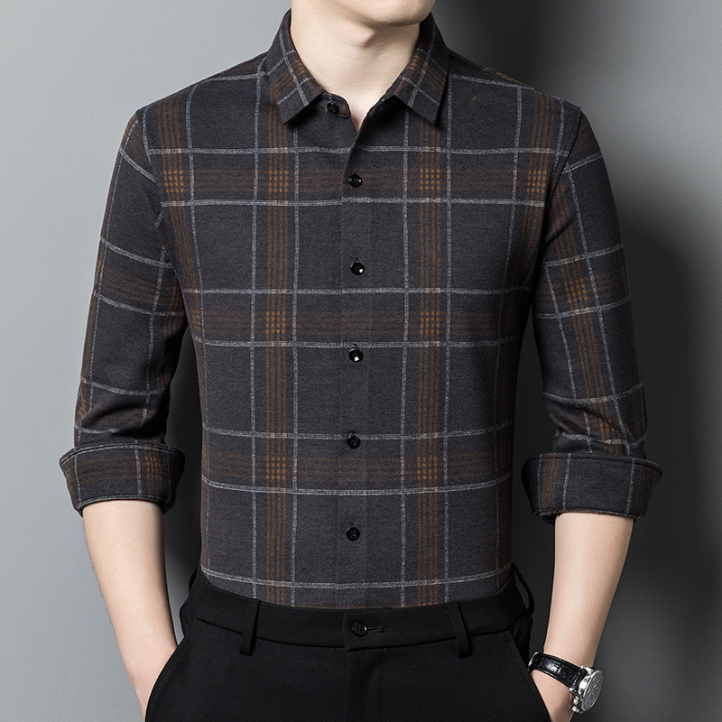 2023 봄과 가을 새로운 젊은 중년 남성 긴팔 울 셔츠 비즈니스 캐주얼 체크 무늬 느슨한 따뜻한 셔츠 남성스토어 가기