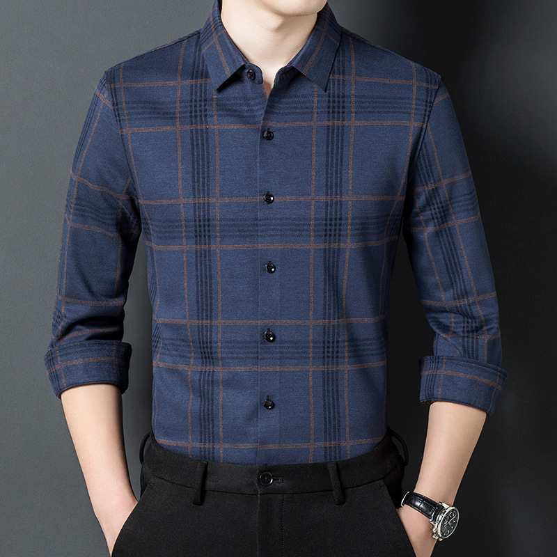 2023 봄과 가을 새로운 젊은 중년 남성 긴팔 울 셔츠 비즈니스 캐주얼 체크 무늬 느슨한 따뜻한 셔츠 남성