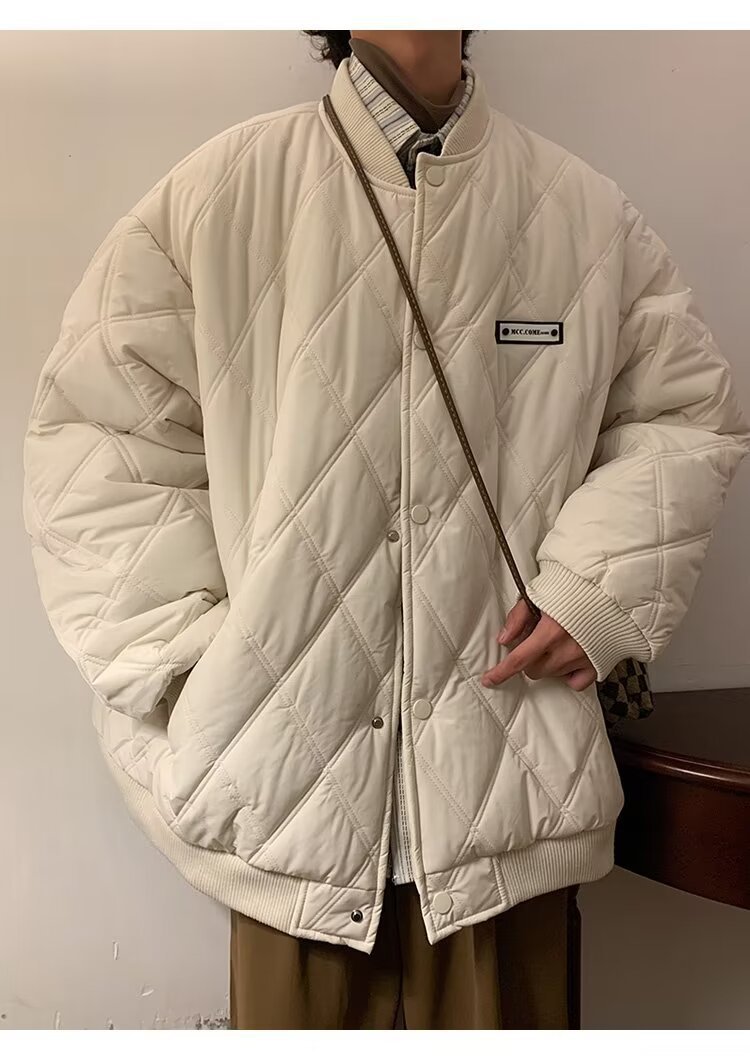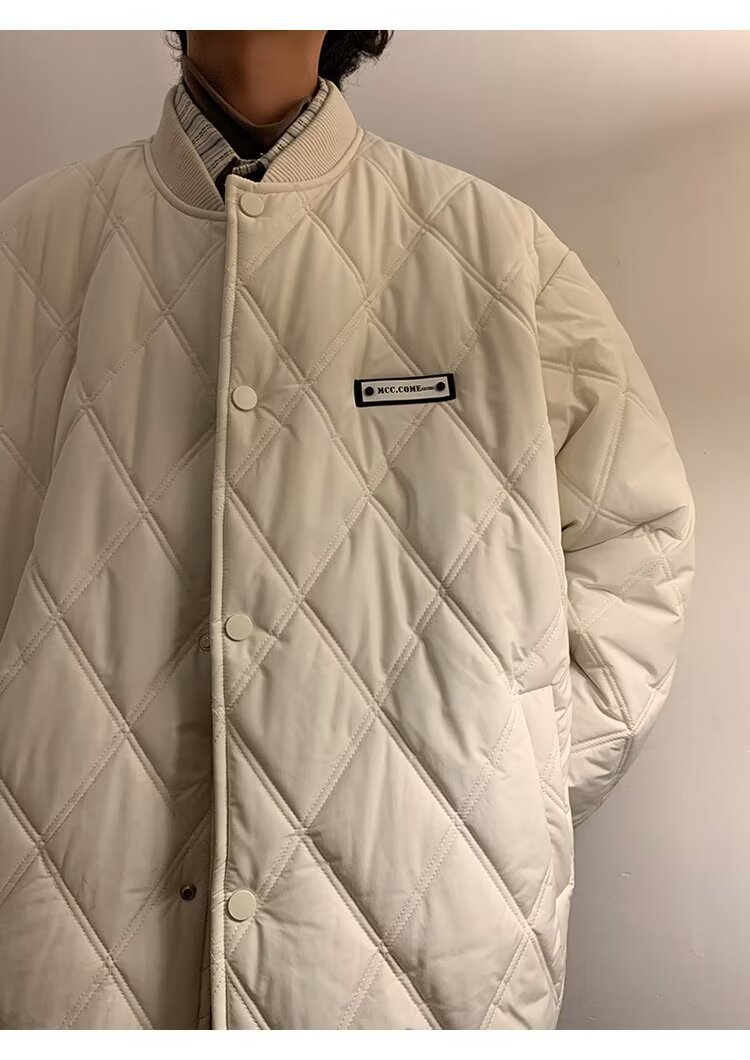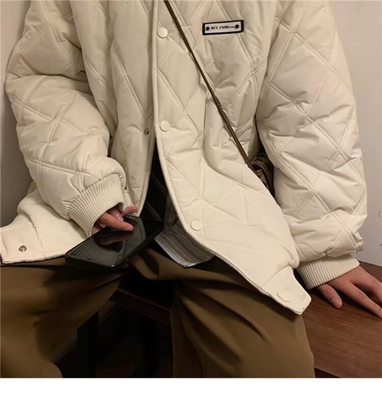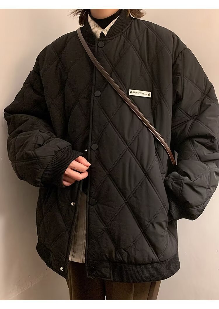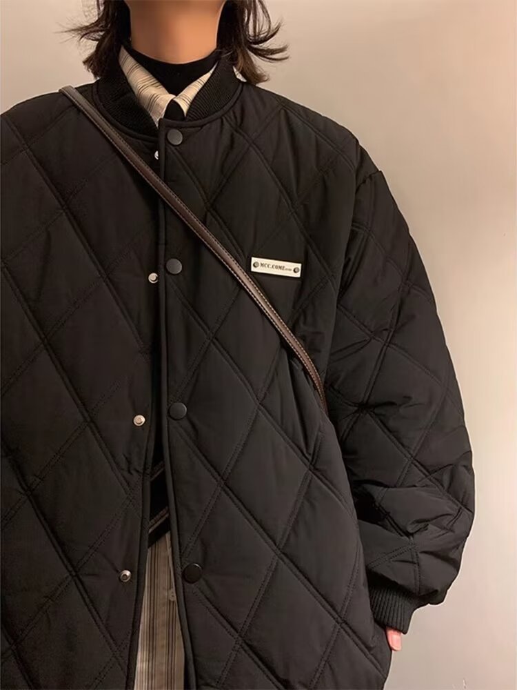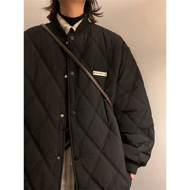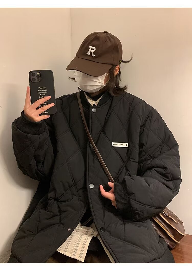 코트 가을과 겨울 다이아몬드 격자 무늬 자수 로고 따뜻한면 패딩 코트 남성과 여성 인 홍콩 스타일 커플 캐주얼 올 매치 코튼 패딩 코트 탑