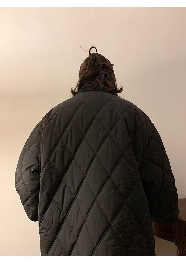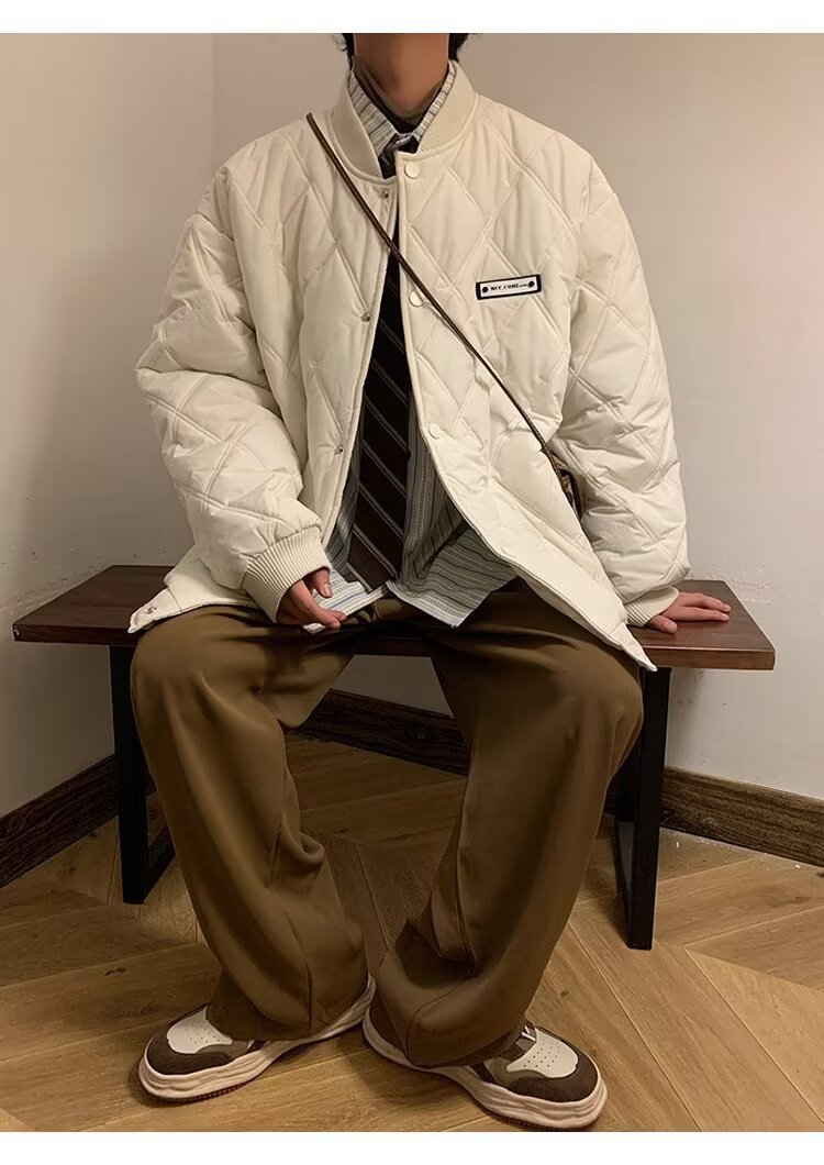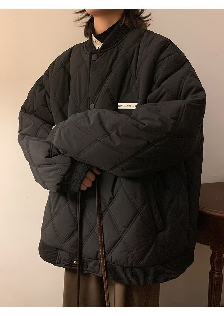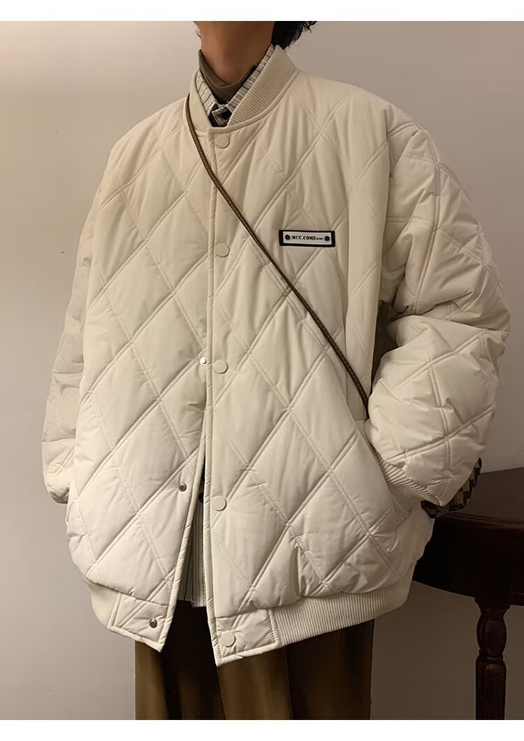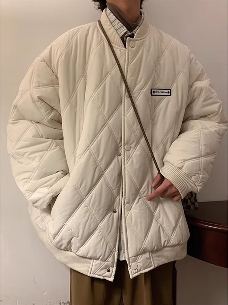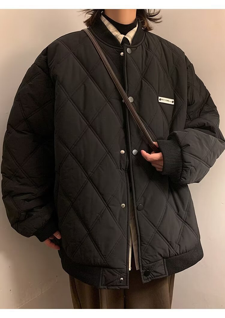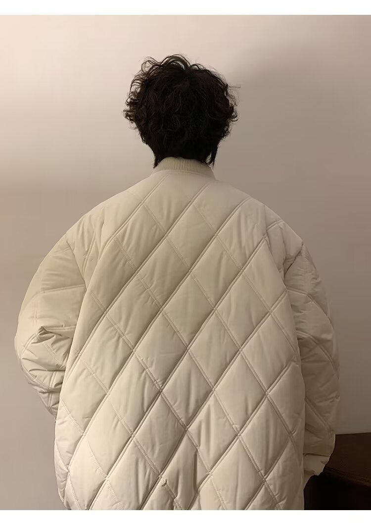 코트 가을과 겨울 다이아몬드 격자 무늬 자수 로고 따뜻한면 패딩 코트 남성과 여성 인 홍콩 스타일 커플 캐주얼 올 매치 코튼 패딩 코트 탑