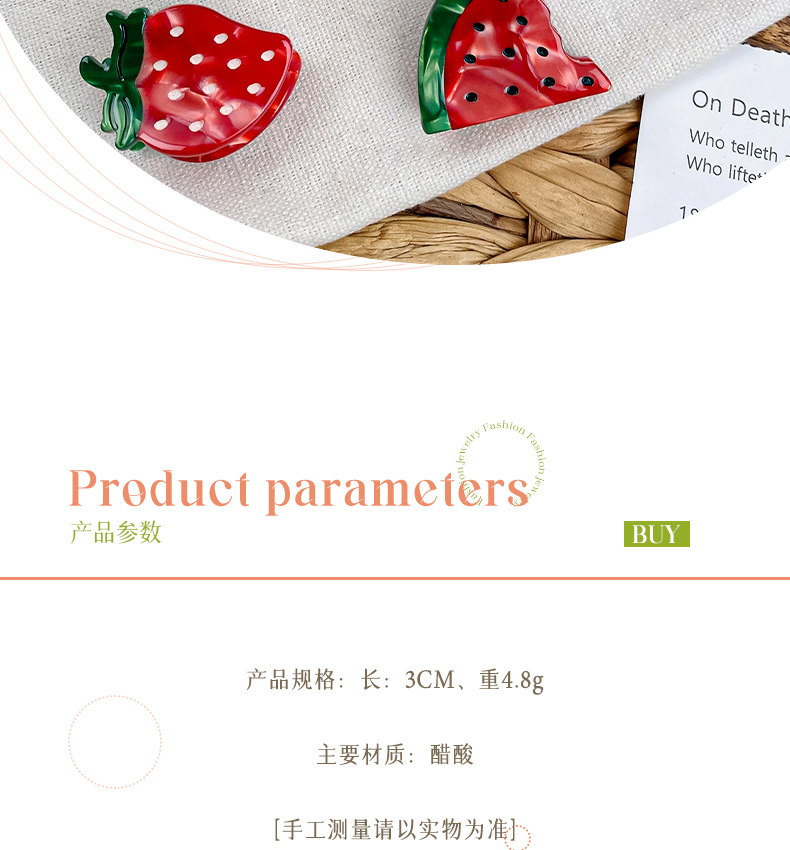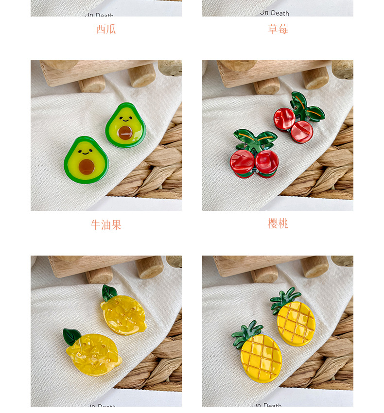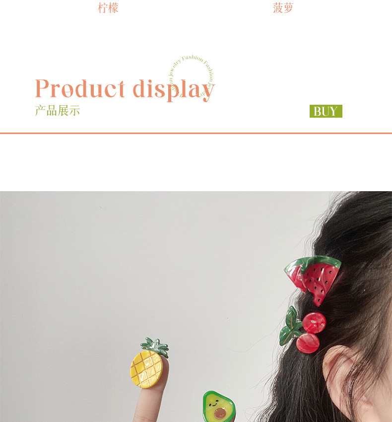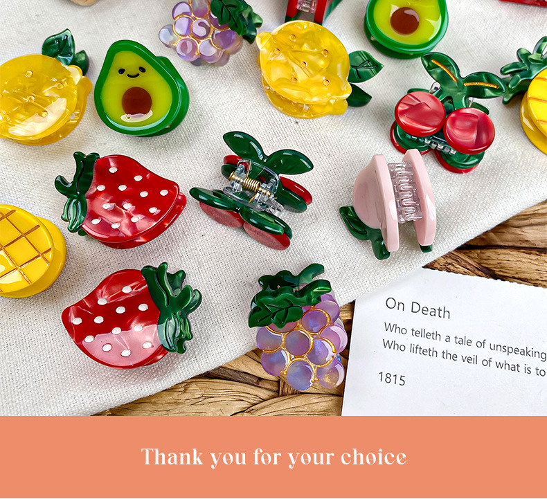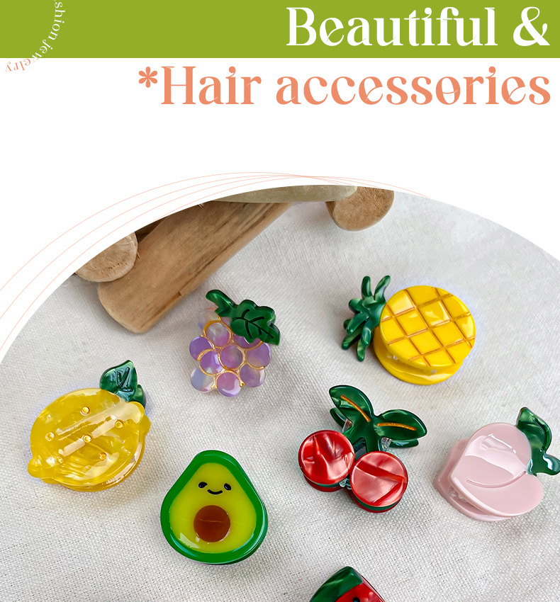 보이야 주얼리 미니 아세테이트 집게핀 귀여운 과일 머리핀 고급스러운 사이드 클립 앞머리 집게핀 헤어 액세서리스토어 가기