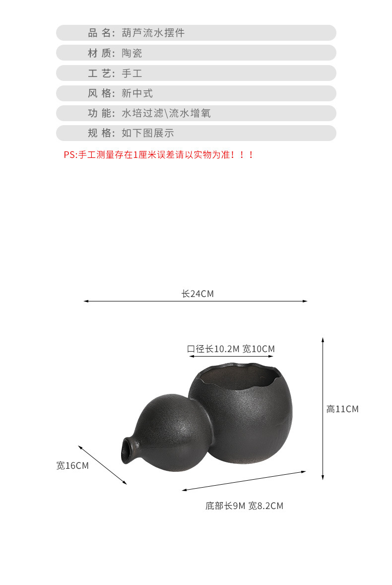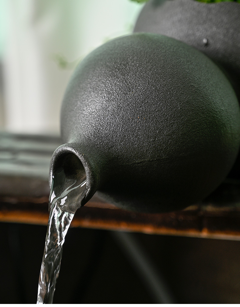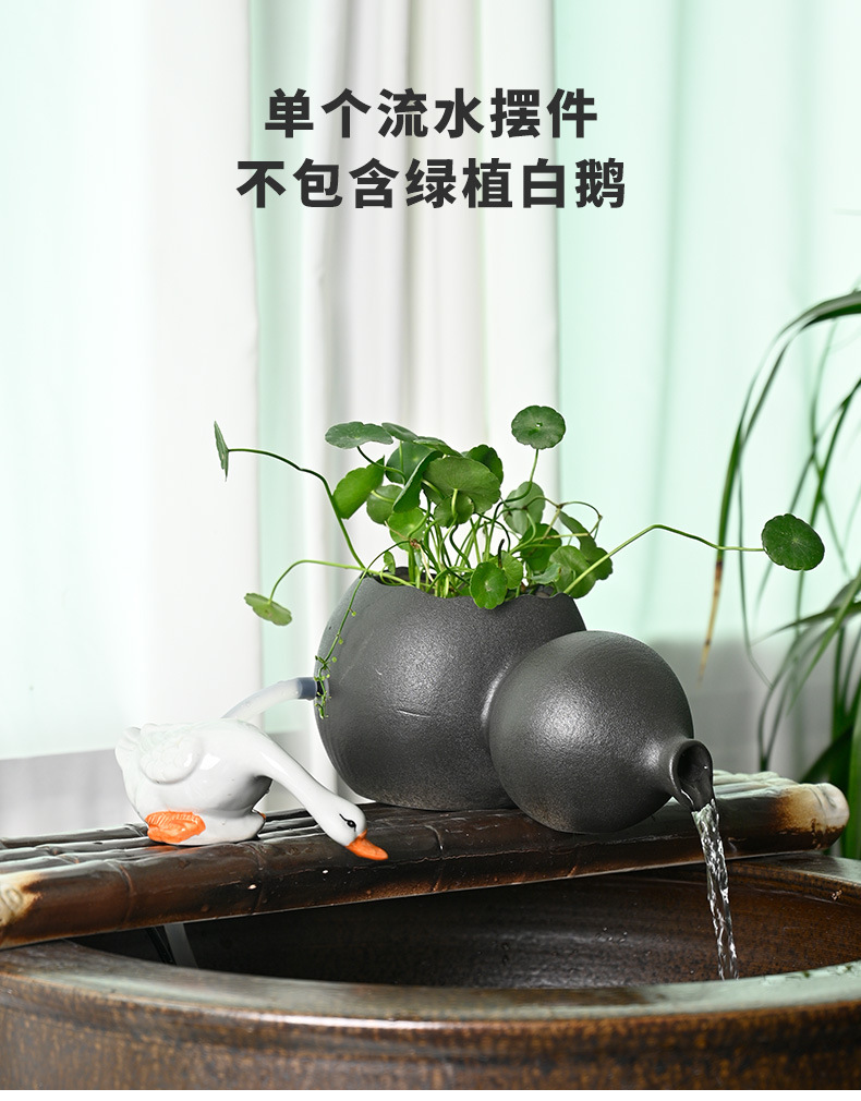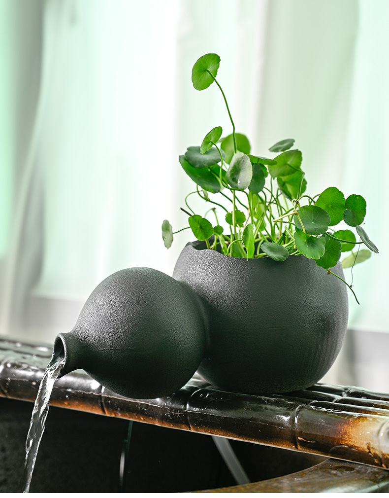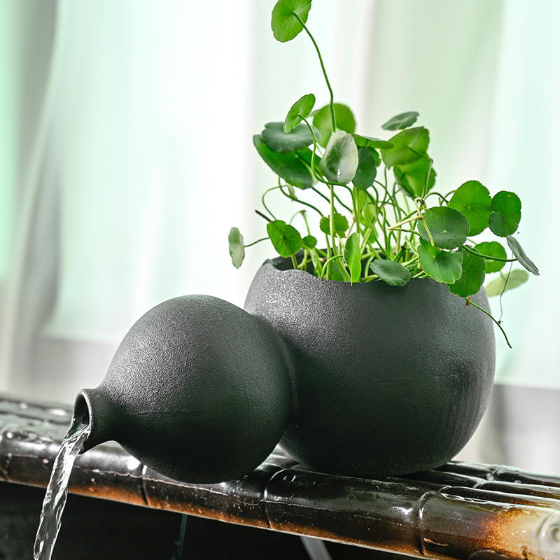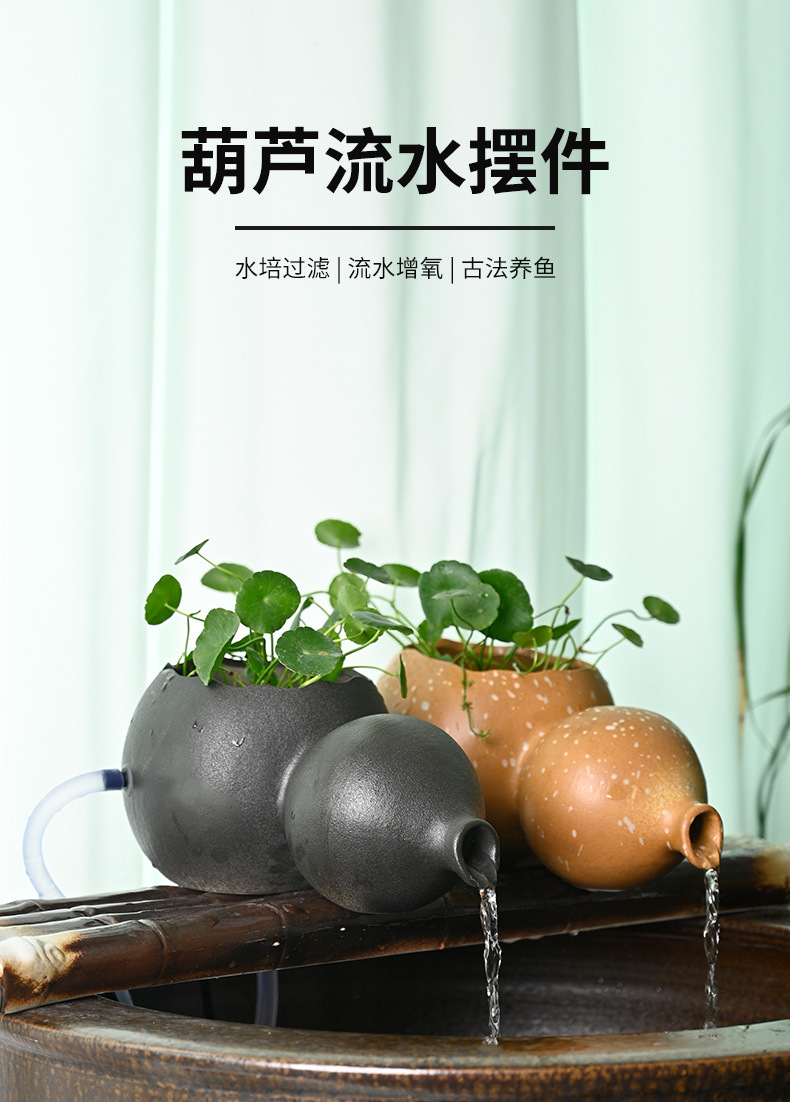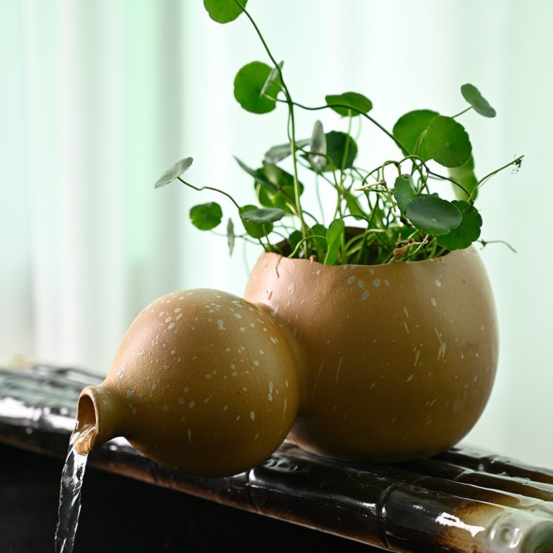 세라믹 조롱박 물 데스크탑 중국 스타일 장식 물고기 탱크 장식 물 출구 수경 녹색 식물 늪 생태 필터스토어 가기
