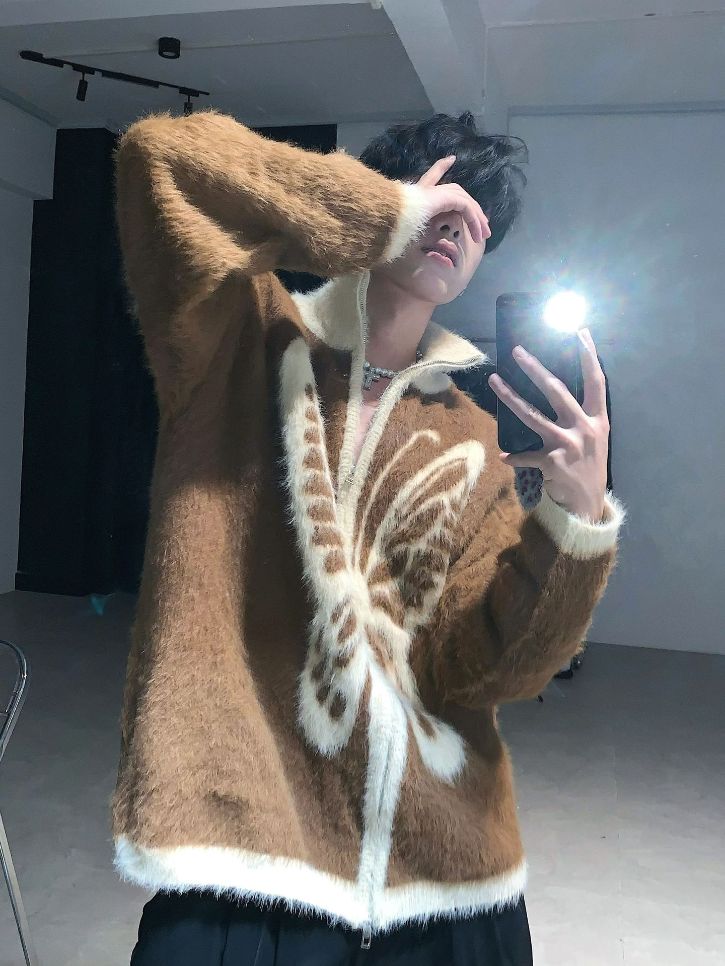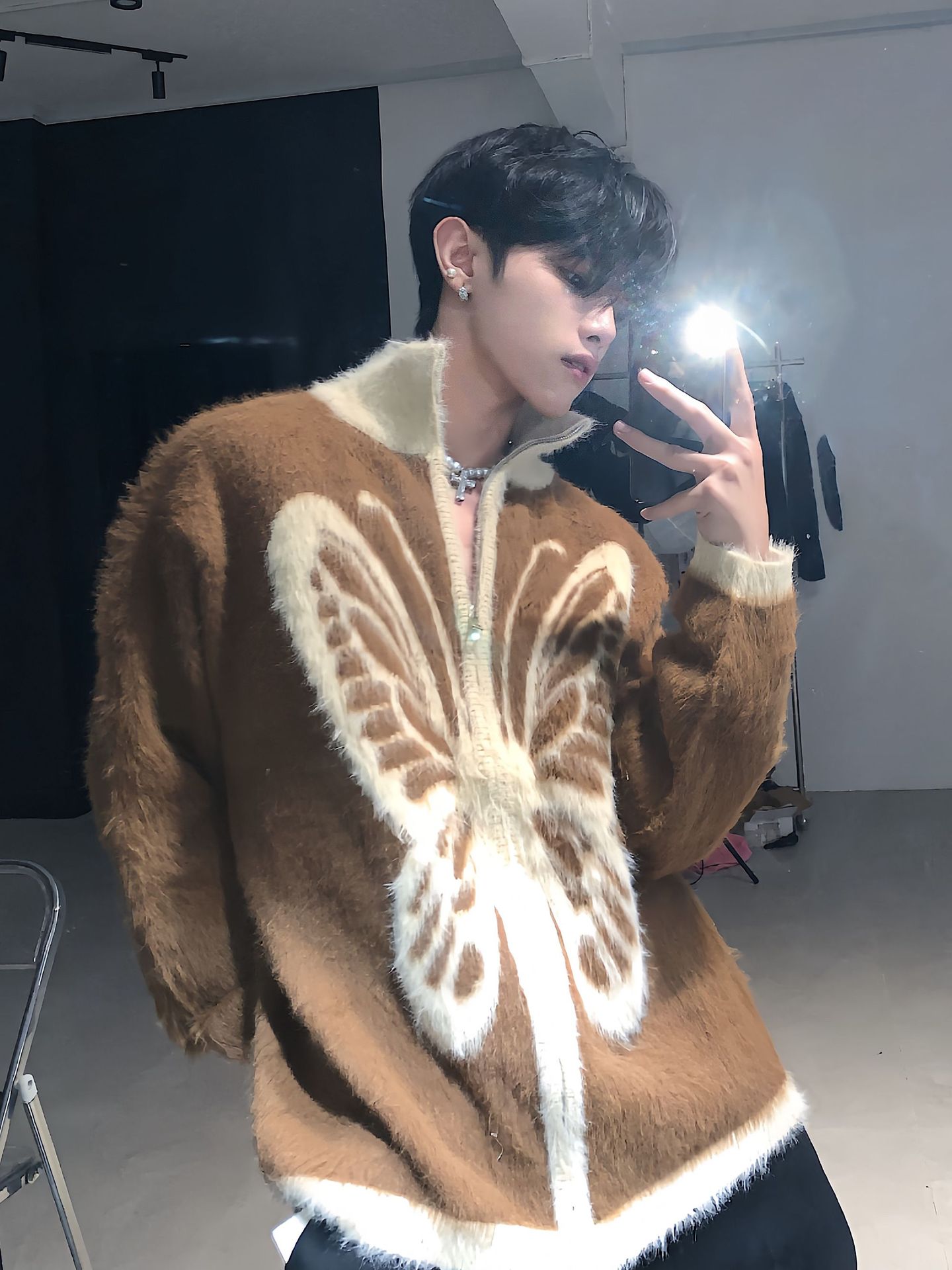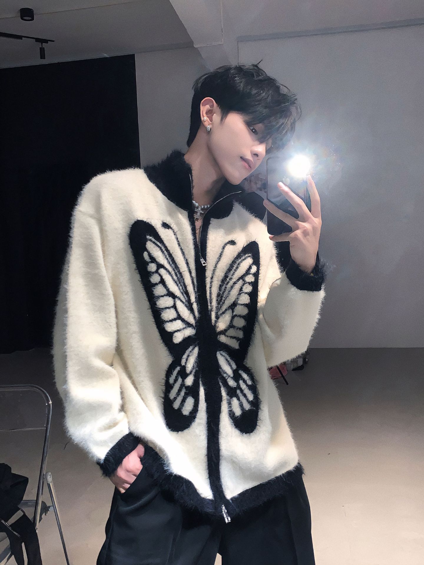 디자인 나비 스웨터 카디건 남성 겨울 틈새 디자인 감각 미국 루안 잘 생긴 스탠드 칼라 게으른 스타일 니트 탑스토어 가기
