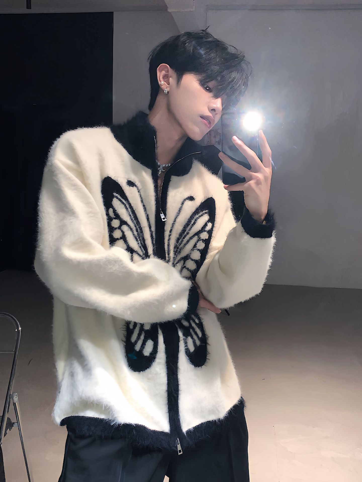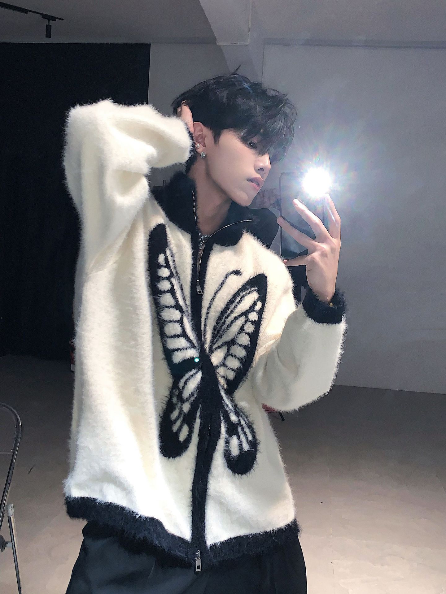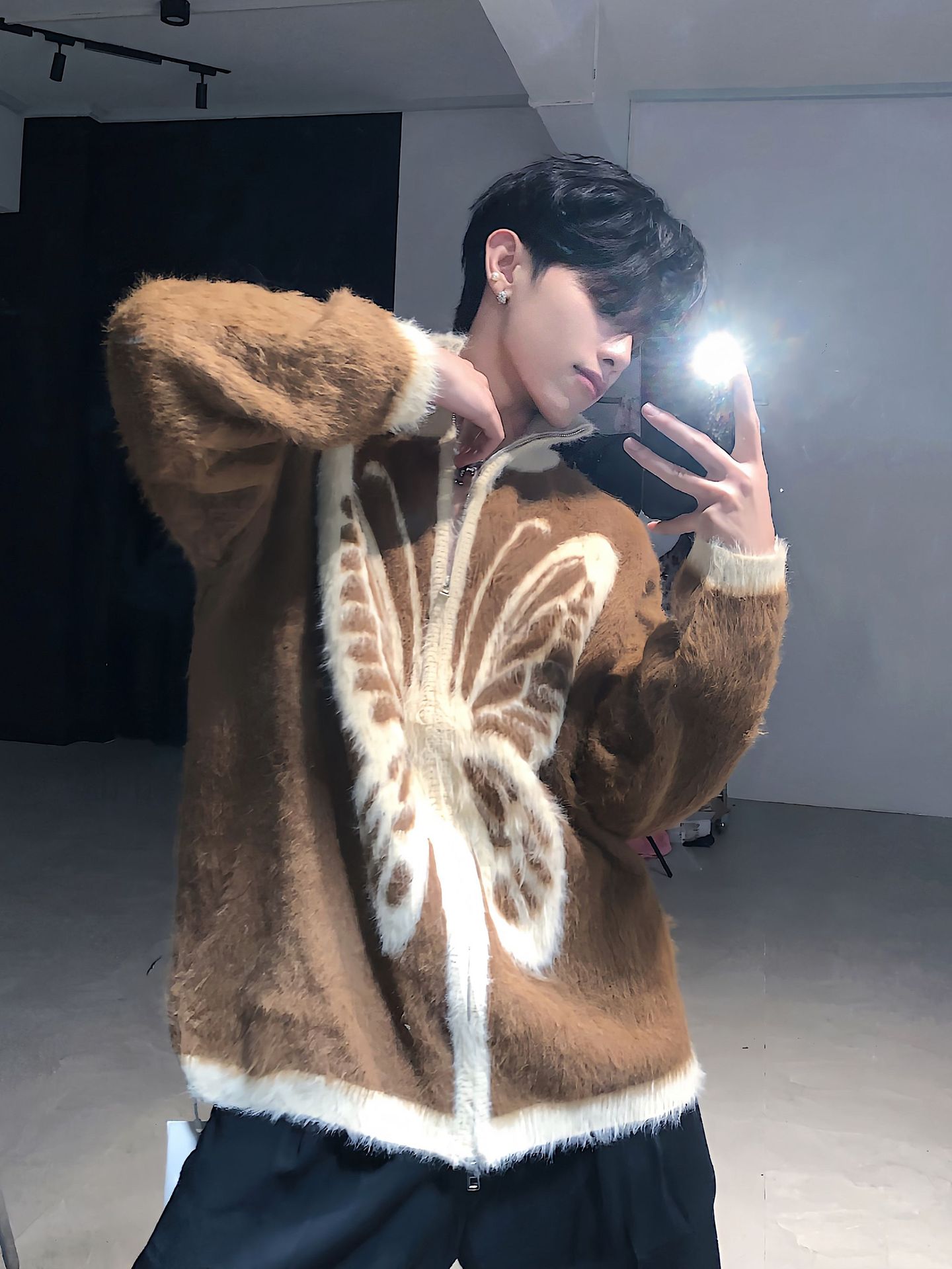 디자인 나비 스웨터 카디건 남성 겨울 틈새 디자인 감각 미국 루안 잘 생긴 스탠드 칼라 게으른 스타일 니트 탑스토어 가기