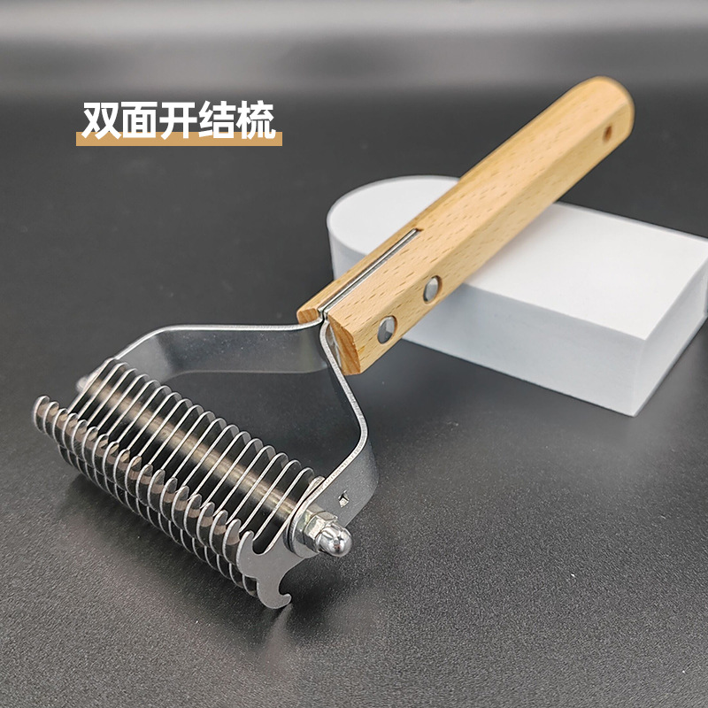 국경 새 애완 동물 나무 손잡이 양면 매듭 아크 이중 사용 머리 제거 빗 개 청소 머리 제거 빗 빗 빗스토어 가기