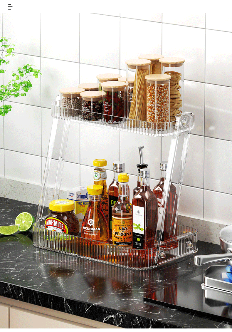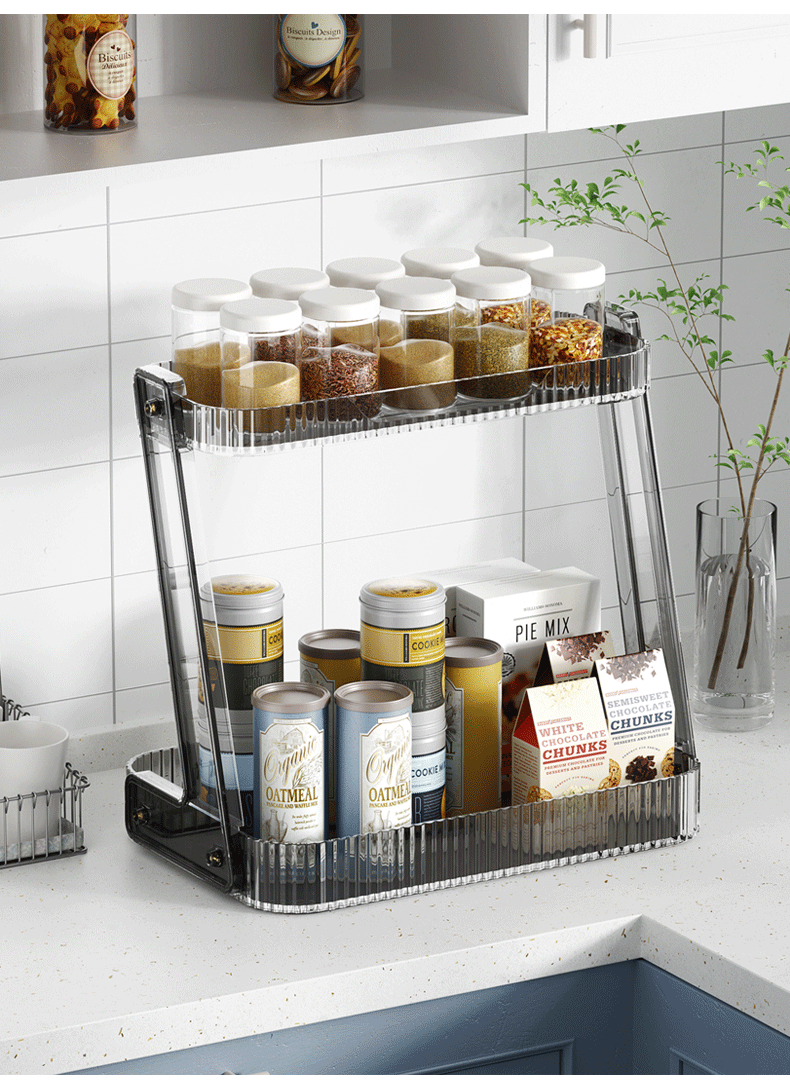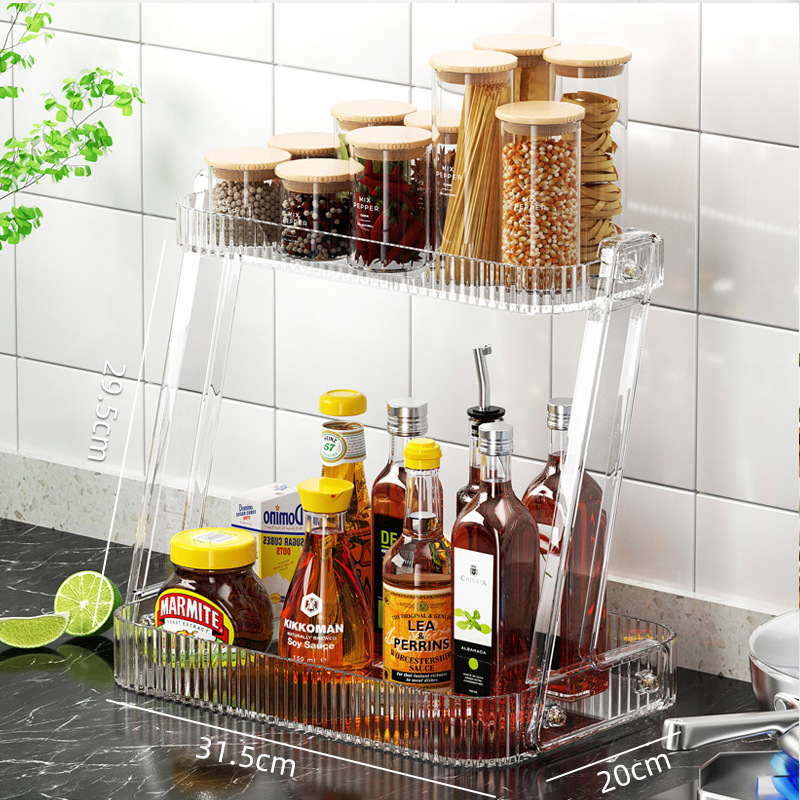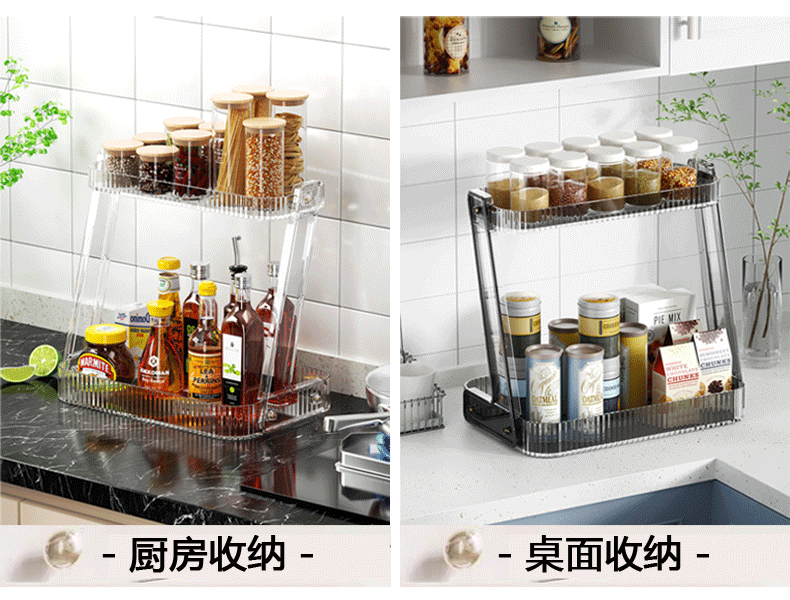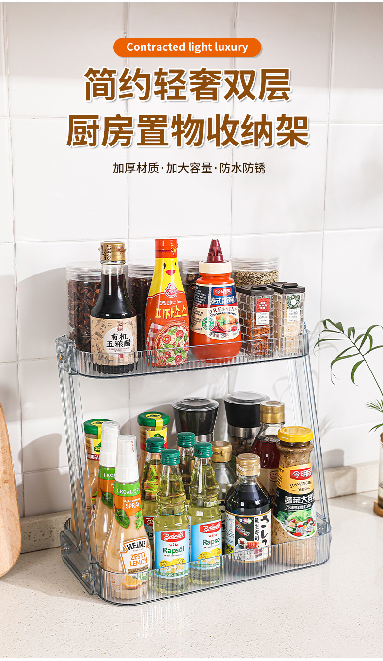 [두꺼운 더블 레이어 스토리지 랙] 가벼운 고급 주방 투명 데스크탑 스토리지 랙 다기능 화장품 스토리지 랙