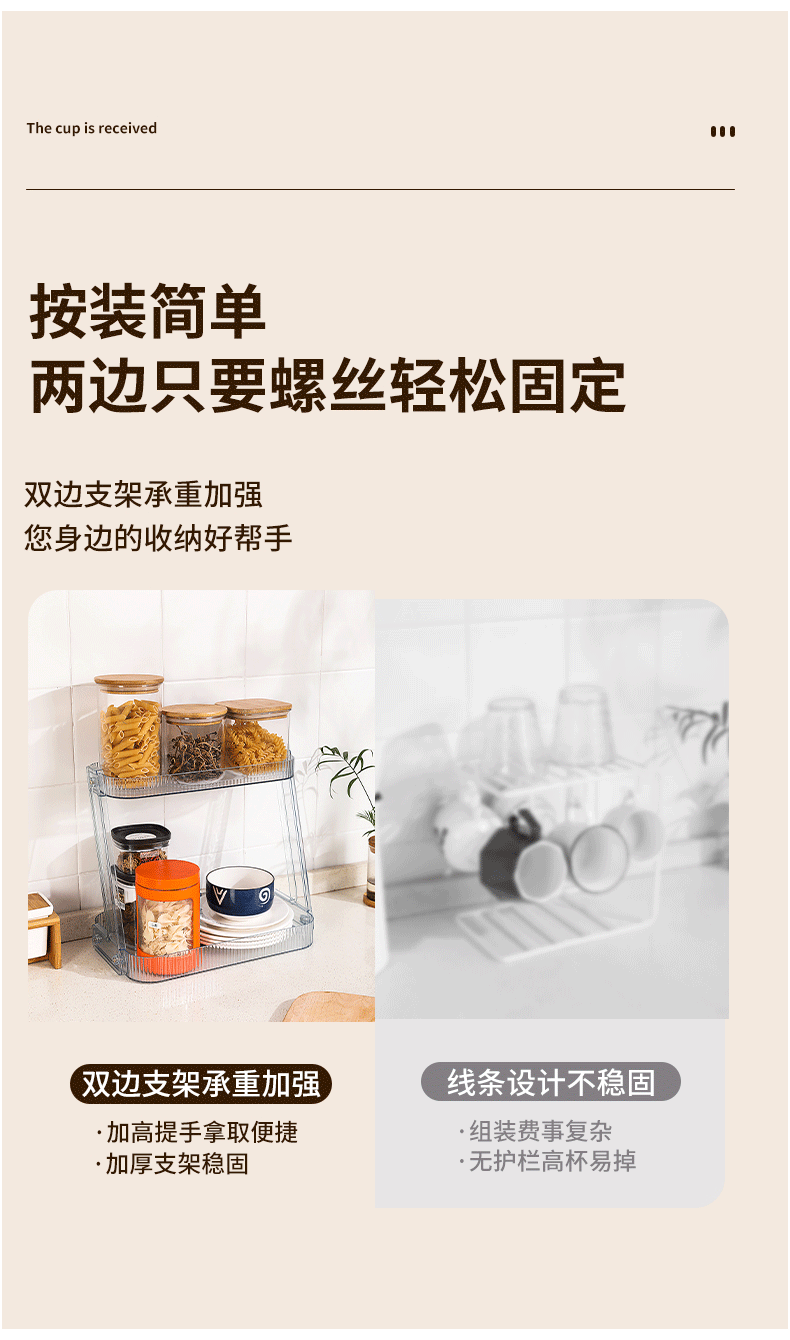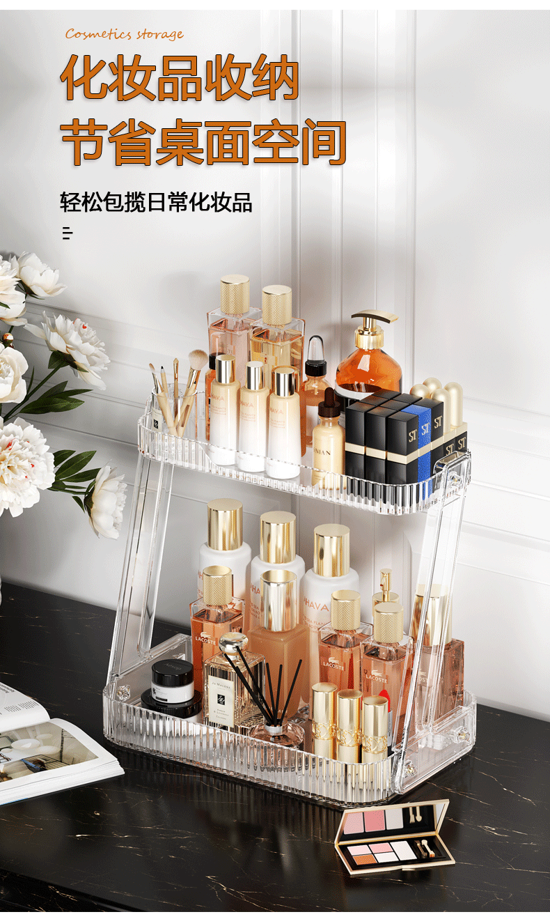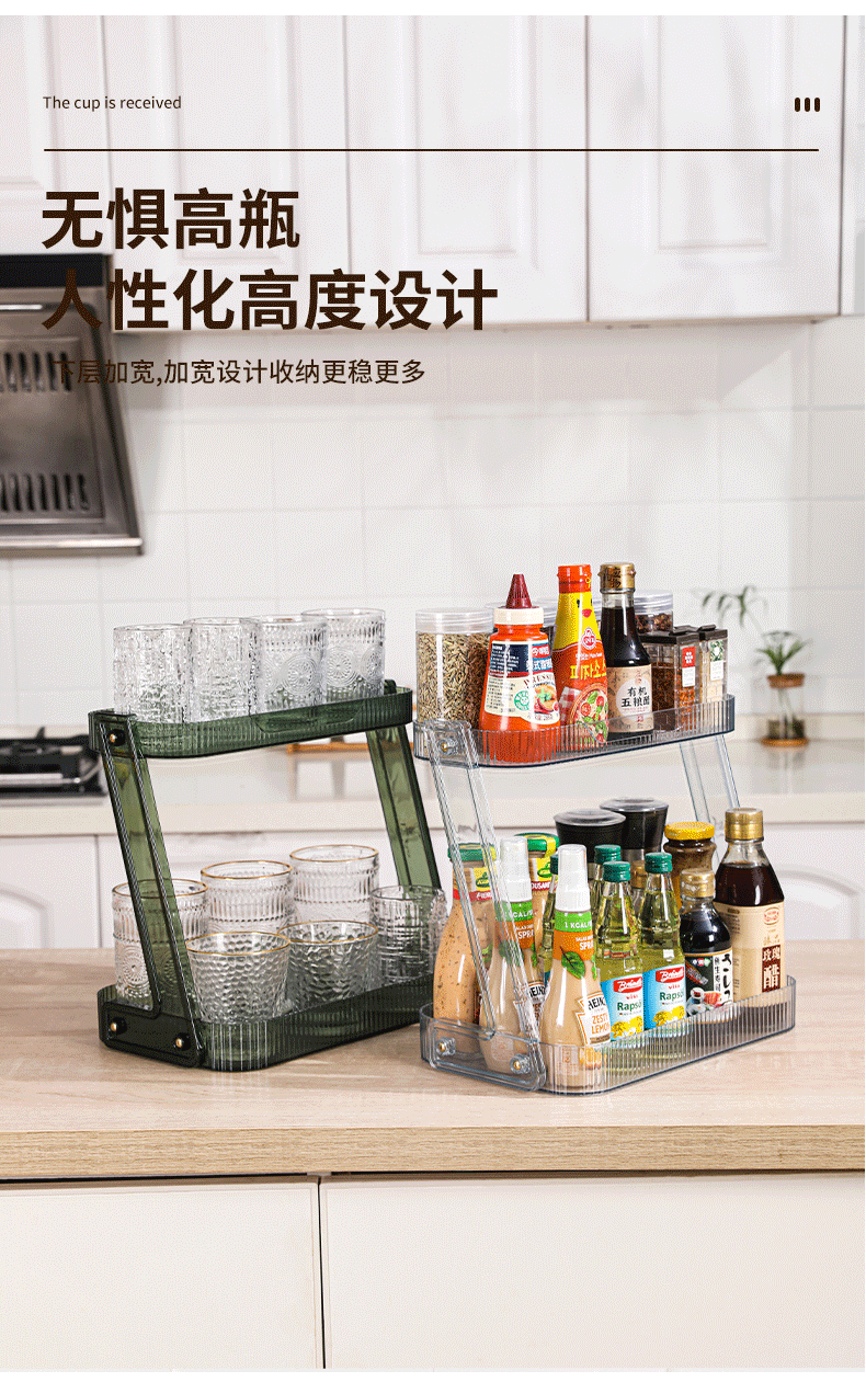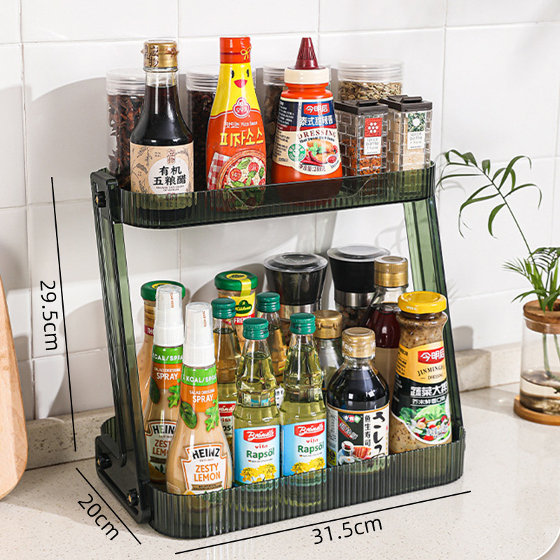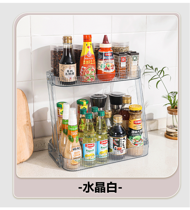 [두꺼운 더블 레이어 스토리지 랙] 가벼운 고급 주방 투명 데스크탑 스토리지 랙 다기능 화장품 스토리지 랙