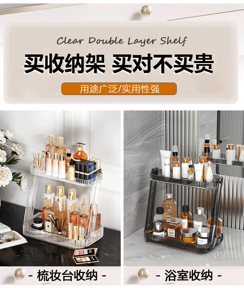 [두꺼운 더블 레이어 스토리지 랙] 가벼운 고급 주방 투명 데스크탑 스토리지 랙 다기능 화장품 스토리지 랙스토어 가기
