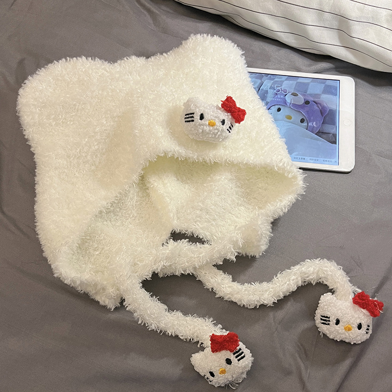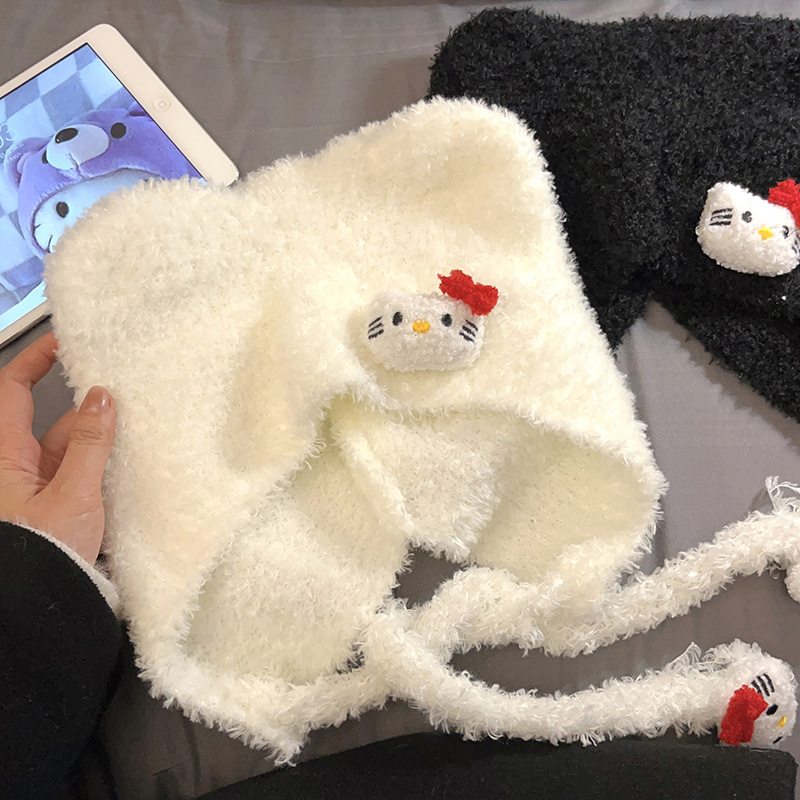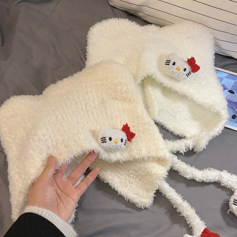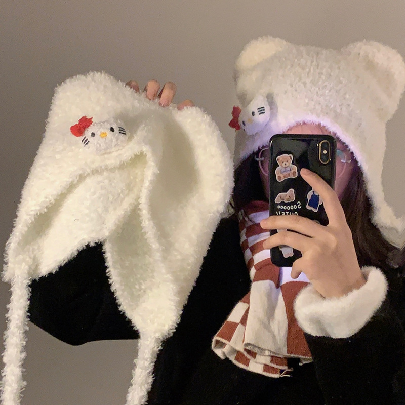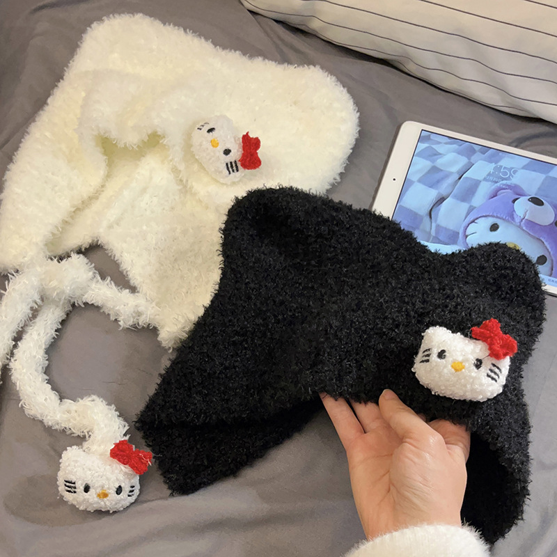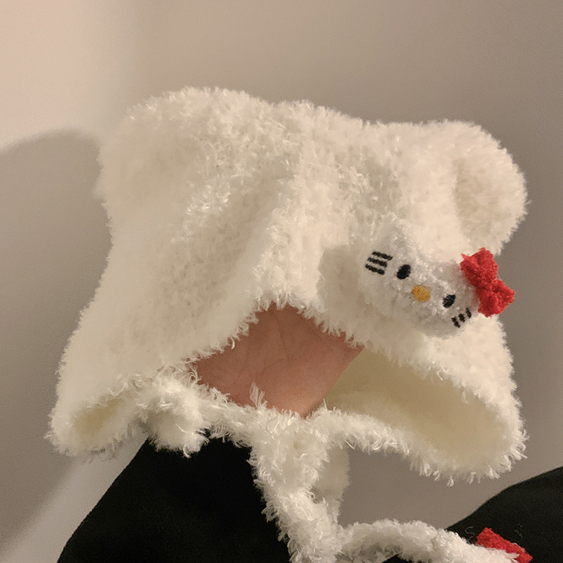 겨울 모자 기모 따뜻한 KT 고양이 봉제 니트 모자 겨울 달콤한 귀 보호 레이 펑 모자 모피 얼굴 작은스토어 가기