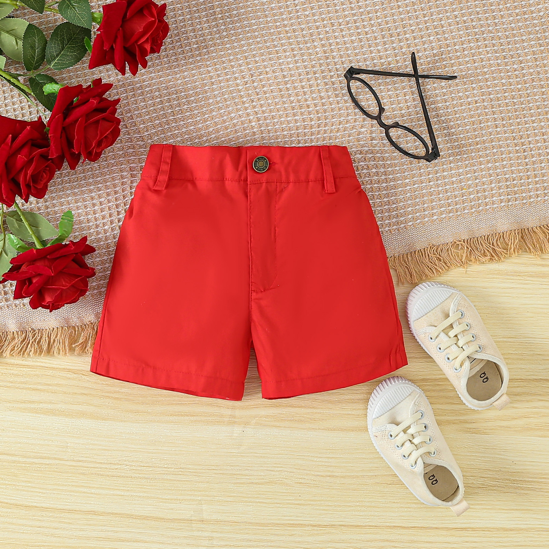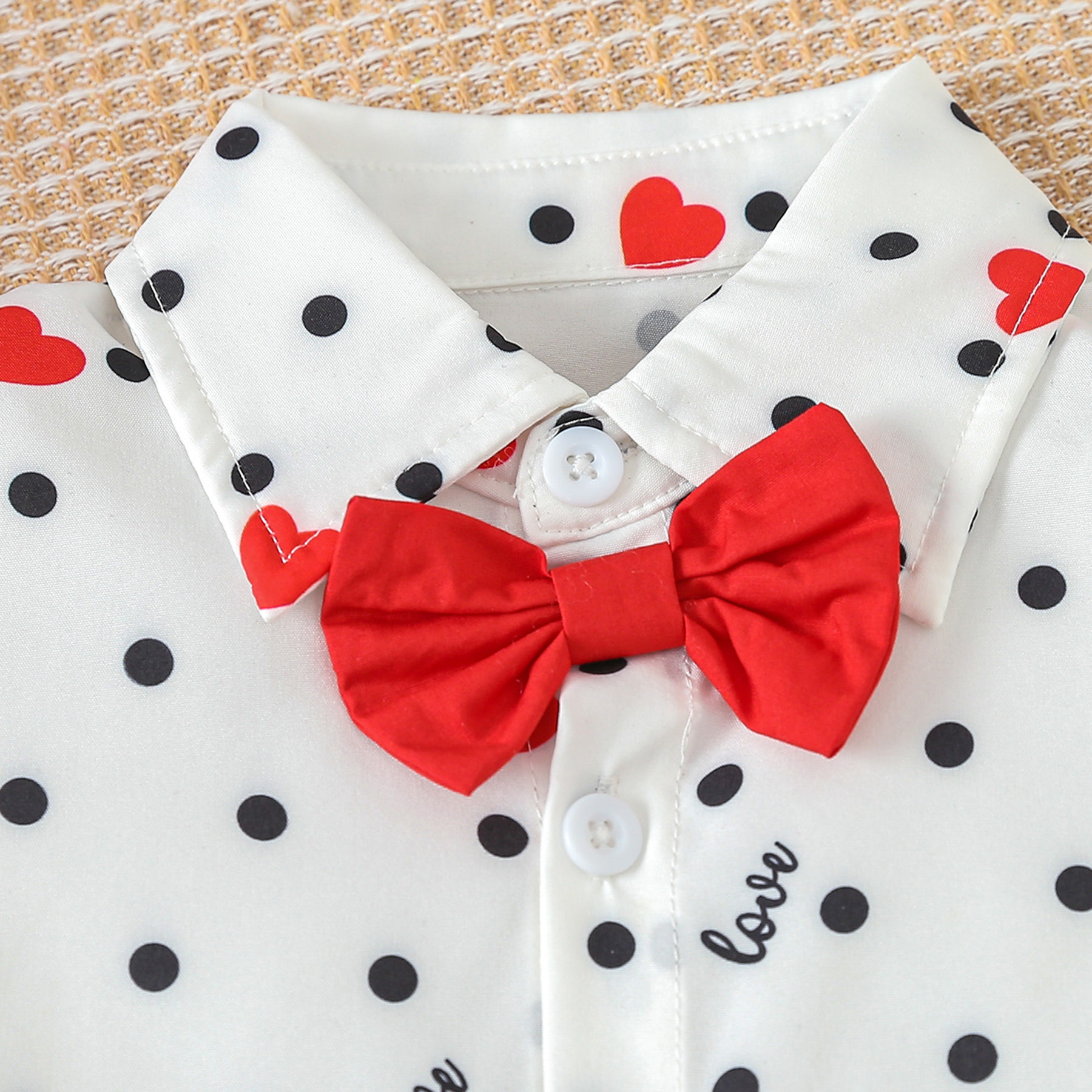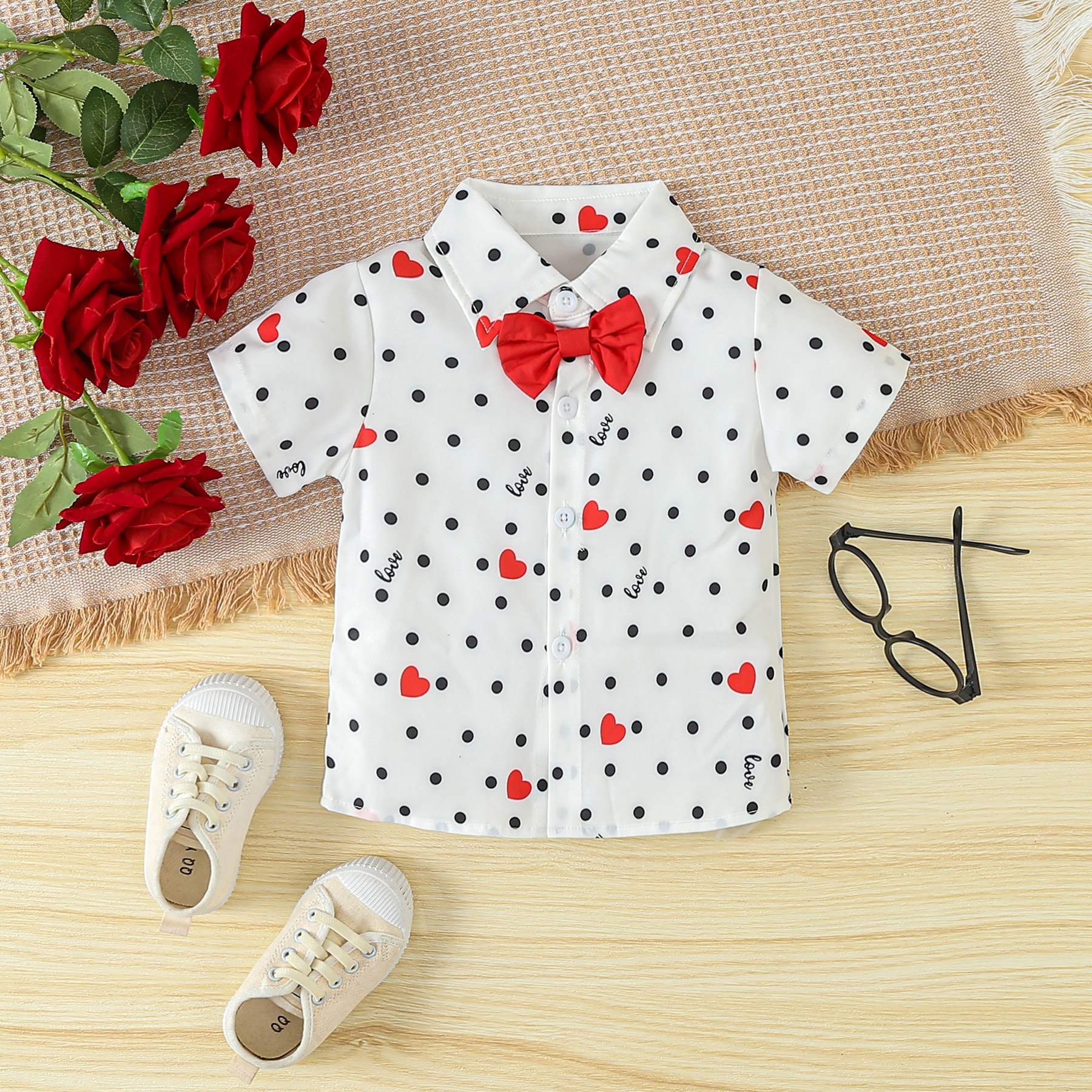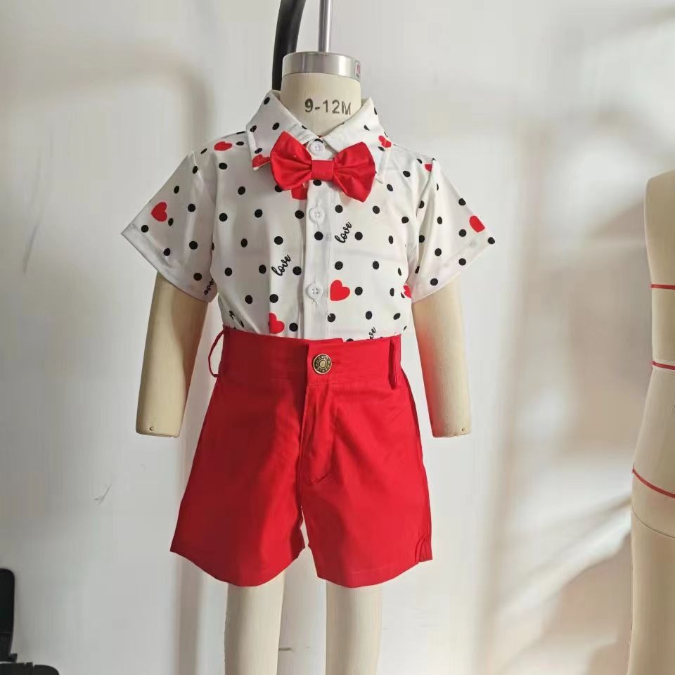 2024 봄과 여름 새로운 소년 발렌타인 데이 신사 세트 러브 레터 프린트 짧은 소매 셔츠 반바지 투피스 세트