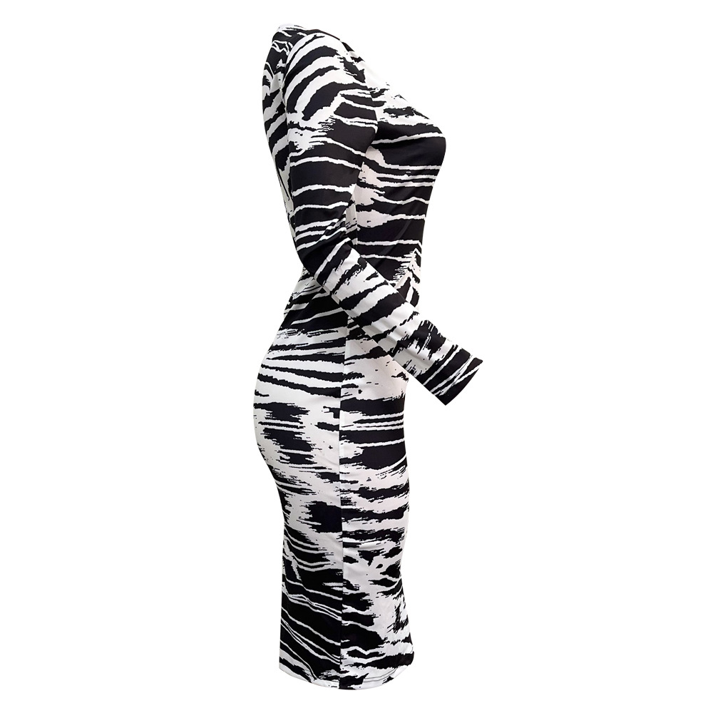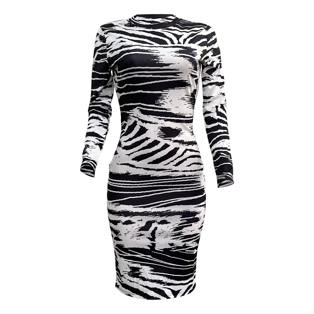 M-0001 유럽과 미국의 가을과 겨울 긴 소매 인쇄 원피스