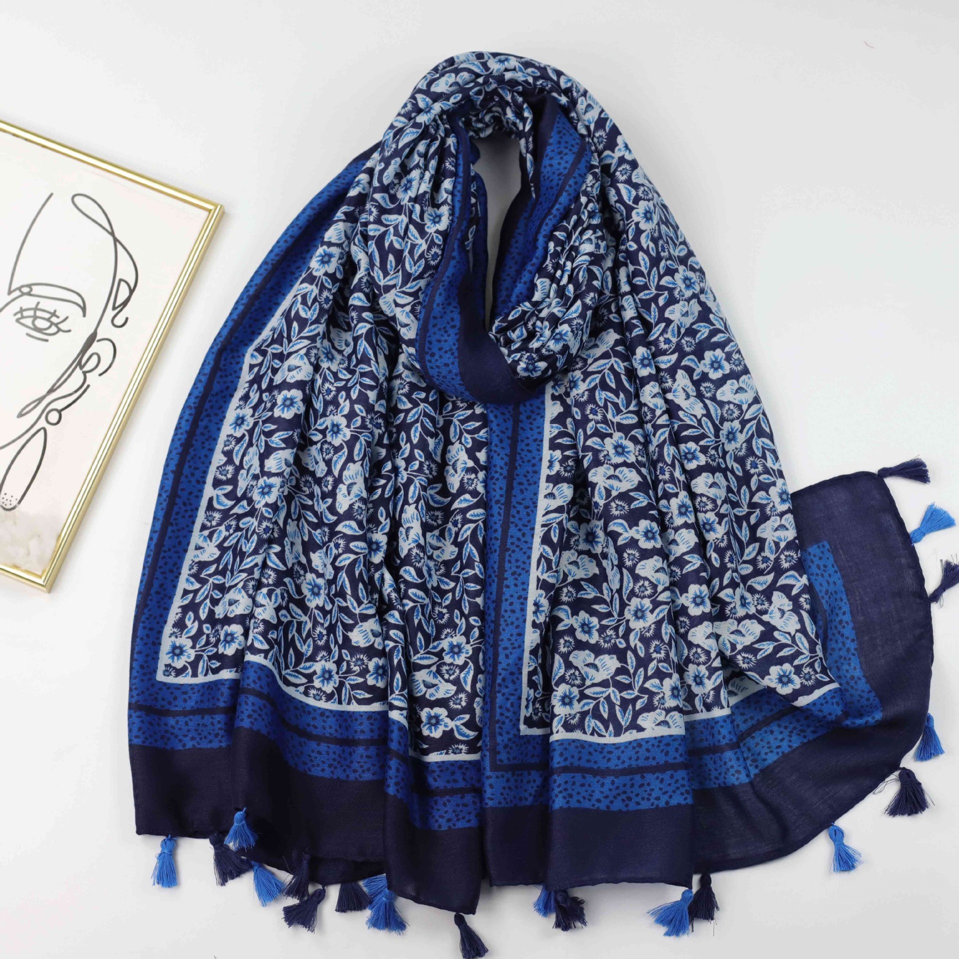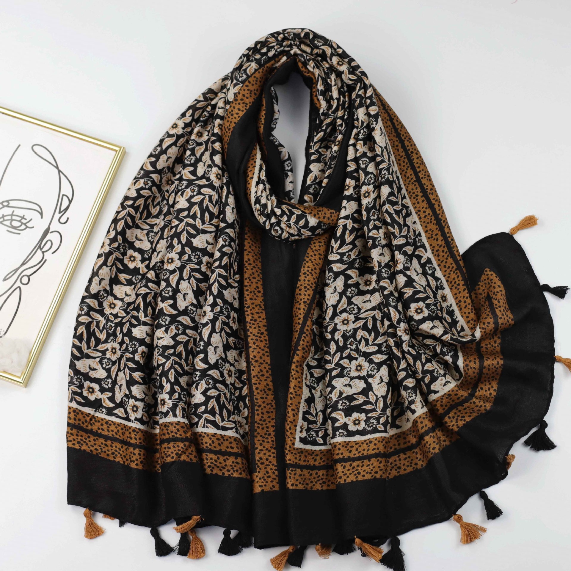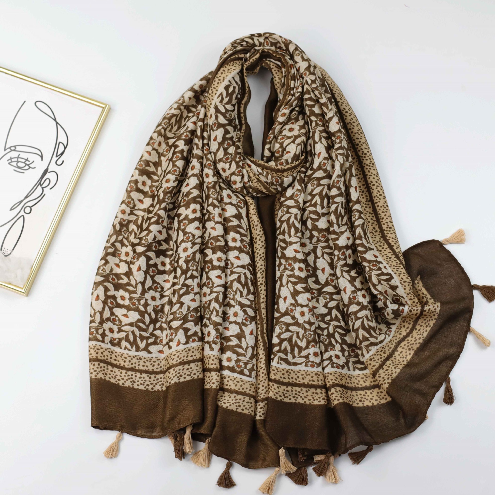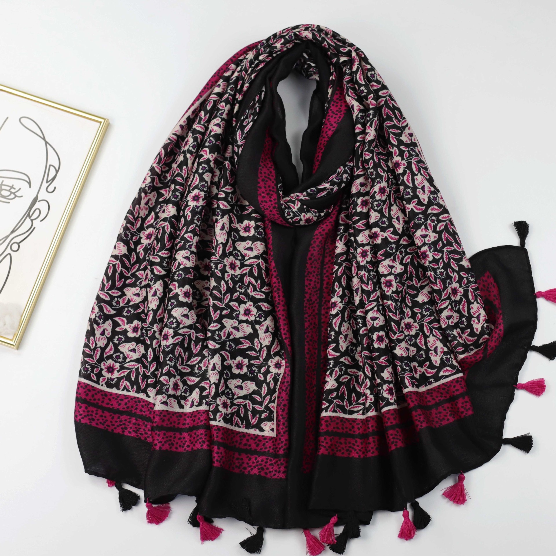 공장 판매 2023 새로운 대외 무역 국경 복숭아 꽃 정원 새틴 인쇄 긴 수건 여행 휴가 선 스크린 따뜻한 목도리스토어 가기