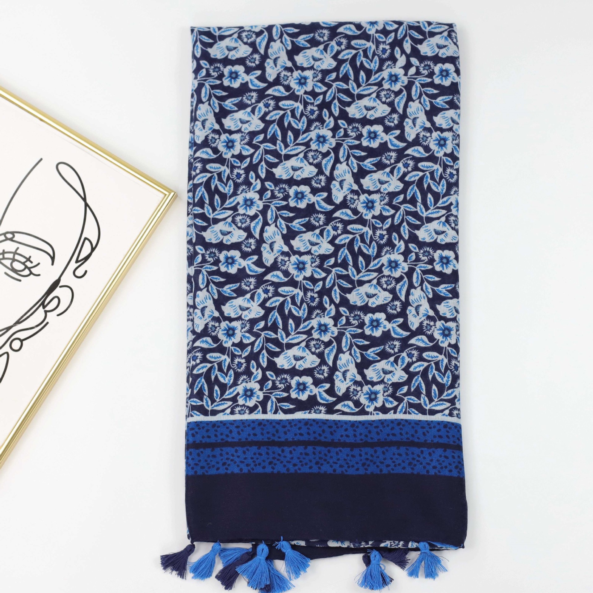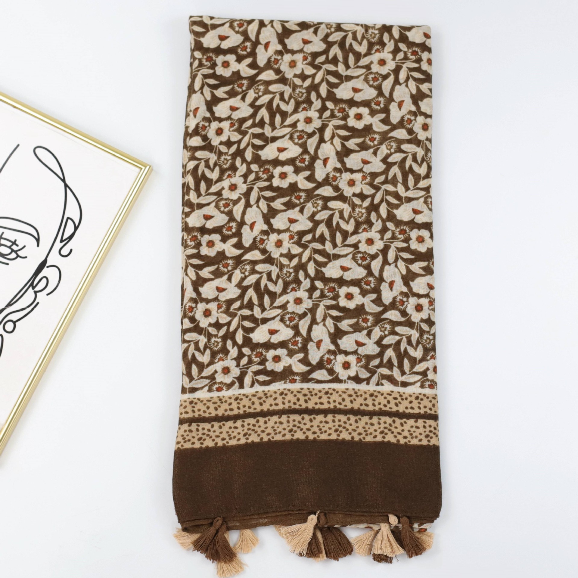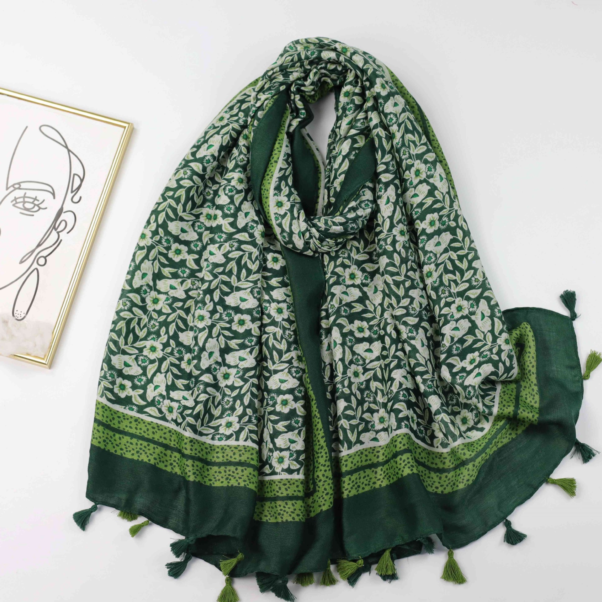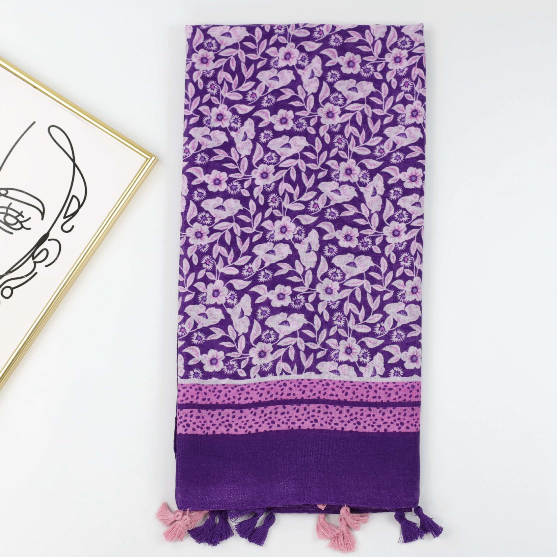 공장 판매 2023 새로운 대외 무역 국경 복숭아 꽃 정원 새틴 인쇄 긴 수건 여행 휴가 선 스크린 따뜻한 목도리스토어 가기