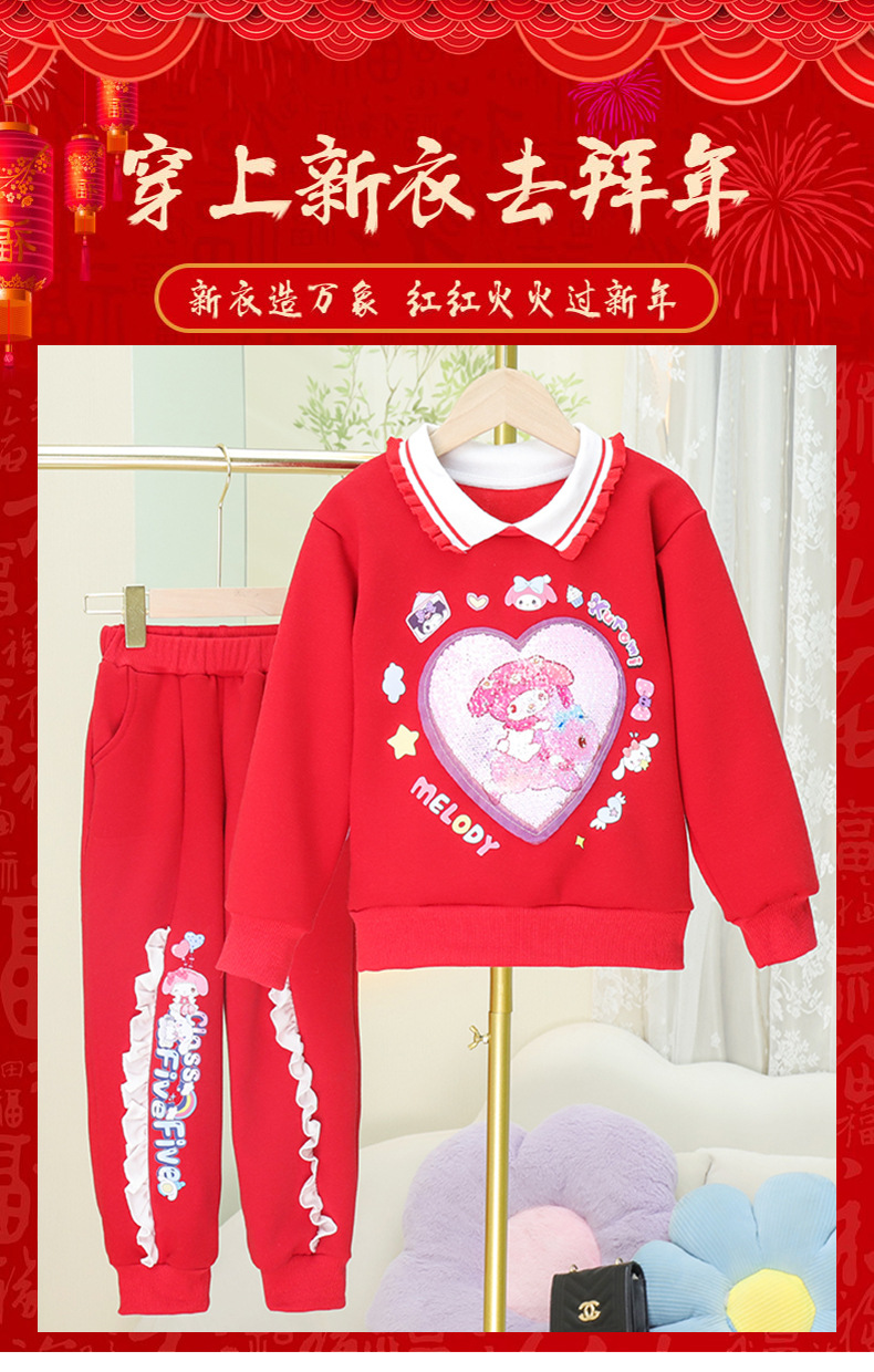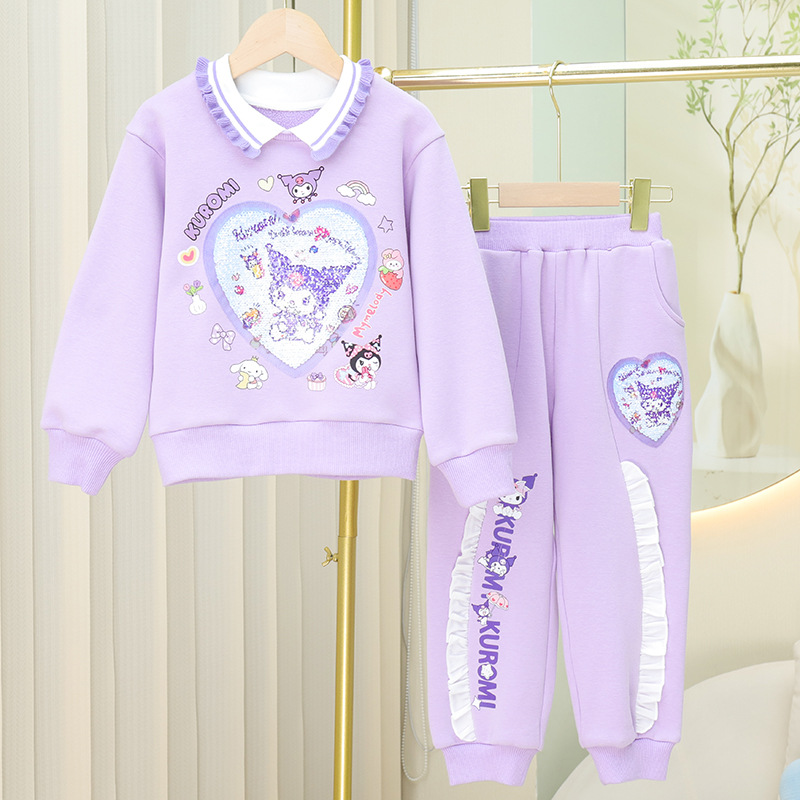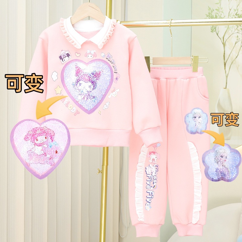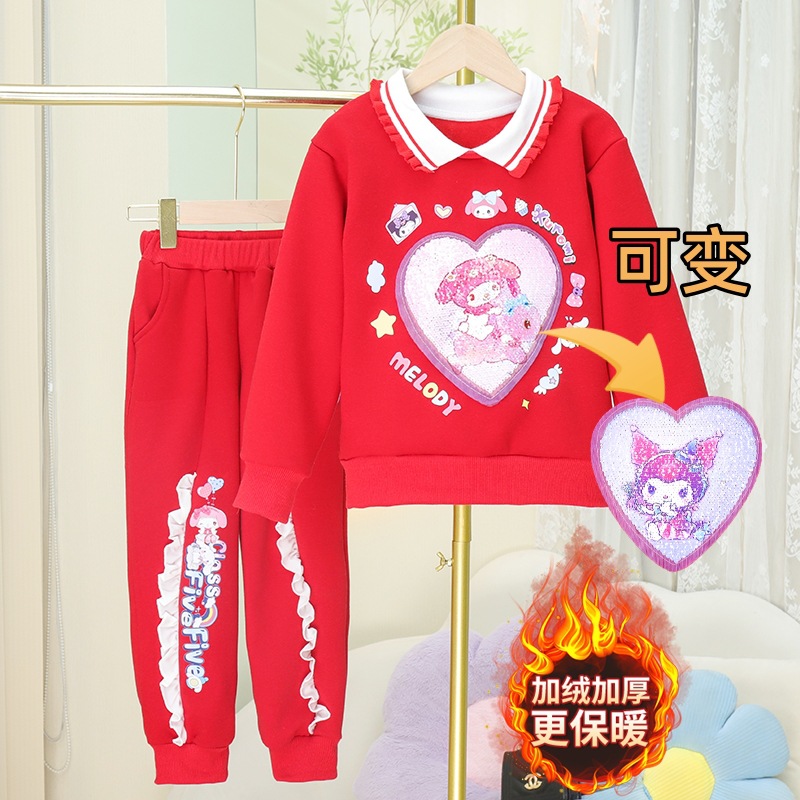 2024 가을과 겨울 봄 드래곤 년 소녀의 긴 소매 기모 두꺼운 스웨터 세트 서양식 캐주얼 올 매치 투피스 세트스토어 가기