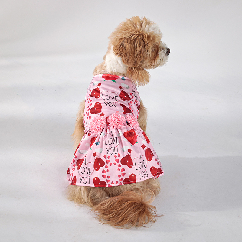 발렌타인 데이 재고 애완 동물 옷 사랑 고양이 개 옷 치마 귀여운 애완 동물 용품 공장 아마존 배달