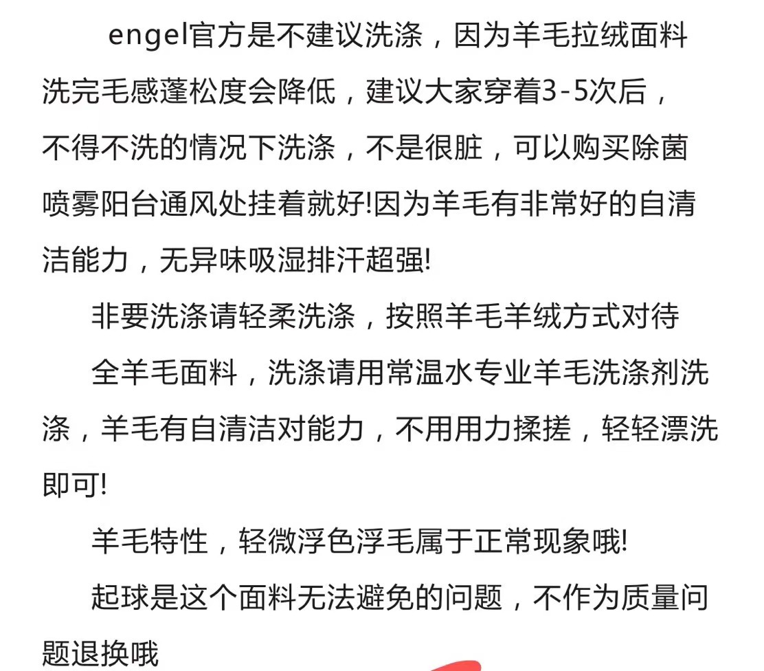 ⚠️全羊毛面料,洗涤请用常温水专业羊毛洗涤剂洗涤,羊毛有自清洁对能力,不用用力揉搓,轻轻漂洗即可!