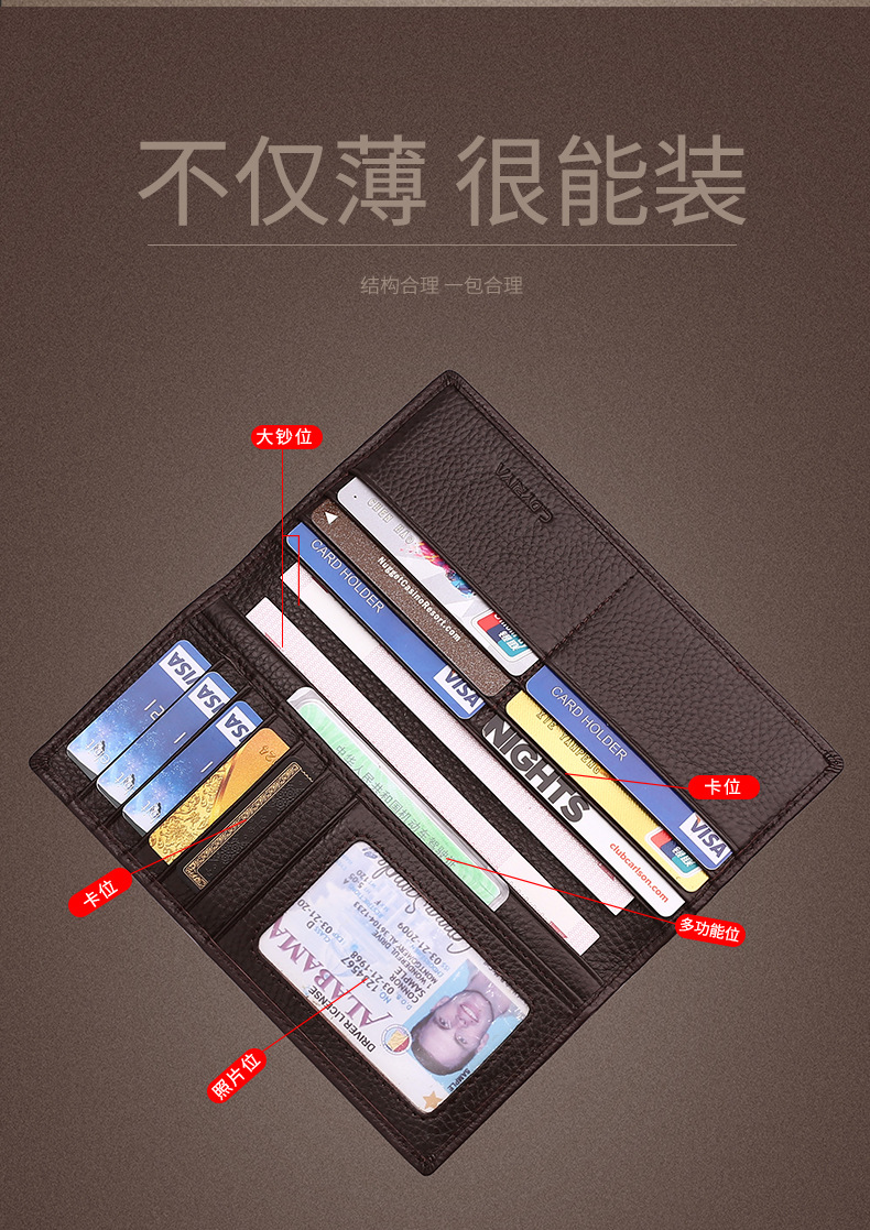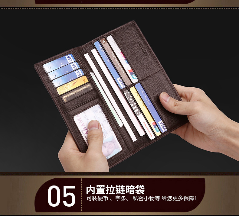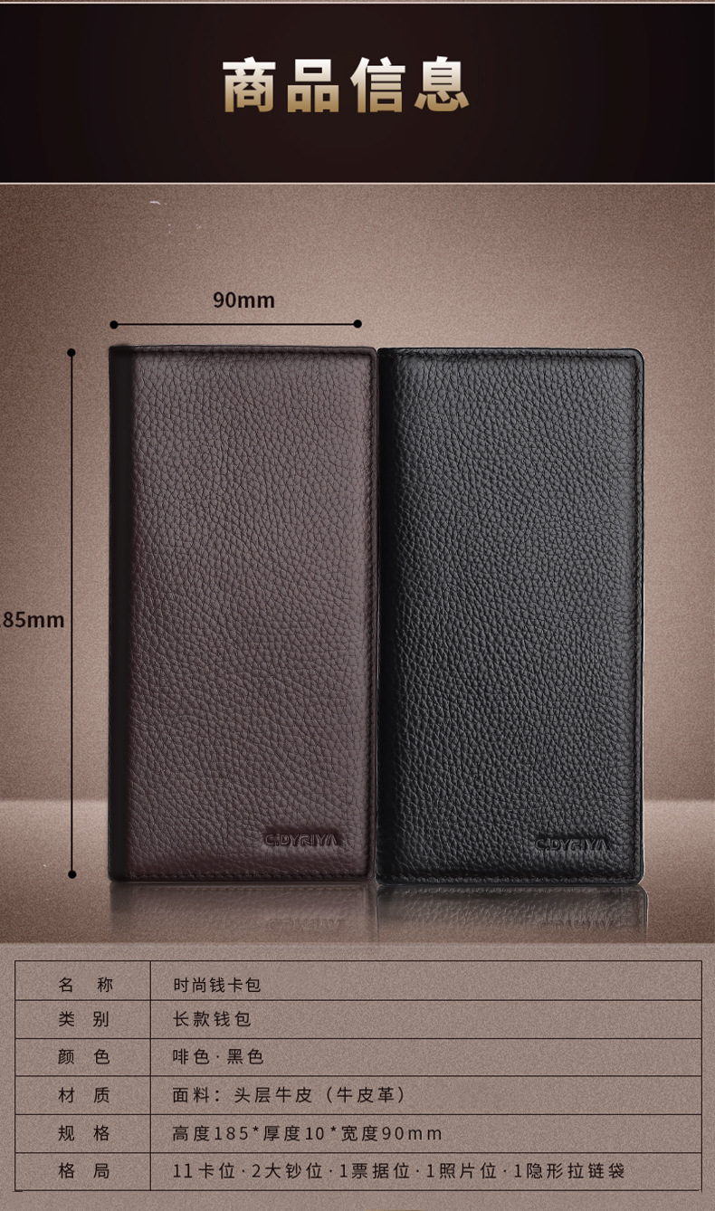 지갑 남자의 긴 가죽 새로운 첫 번째 레이어 가죽 지퍼 지갑 다기능 얇은 지갑 카드 가방 도매스토어 가기